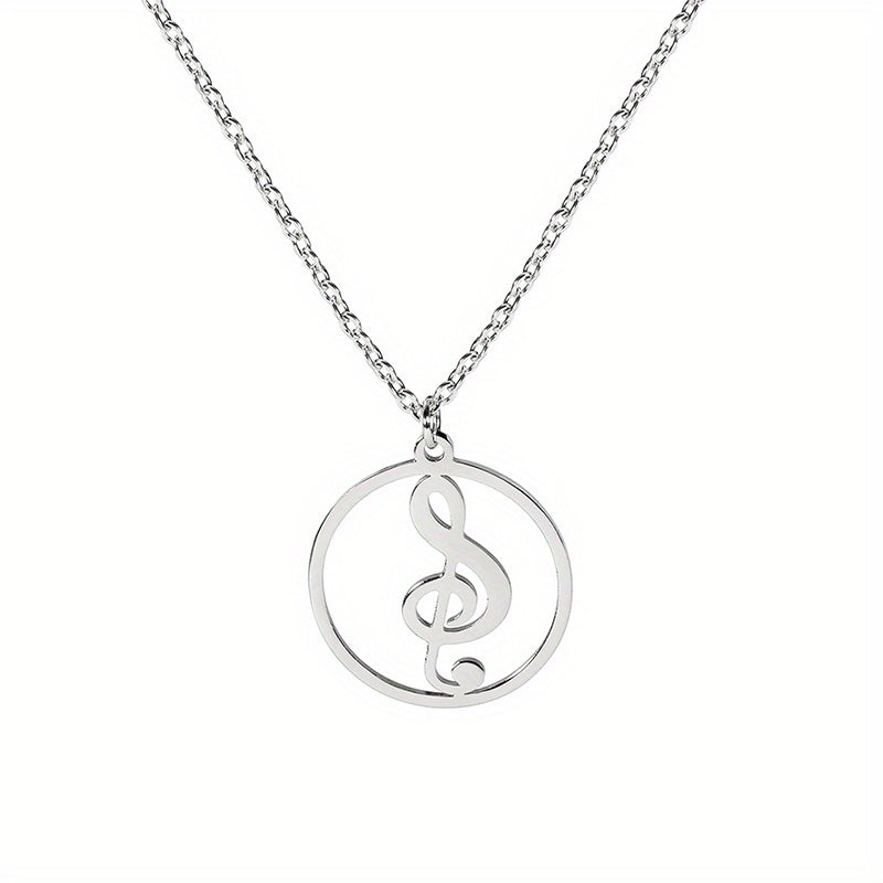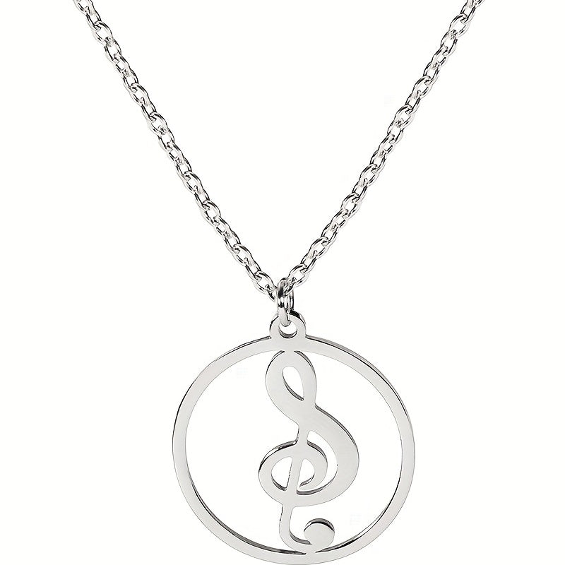 This pendant necklace features a musical symbol design, made of high-quality stainless steel with a silver plating. It is a stylish and unique accessory for men to show their love for music.