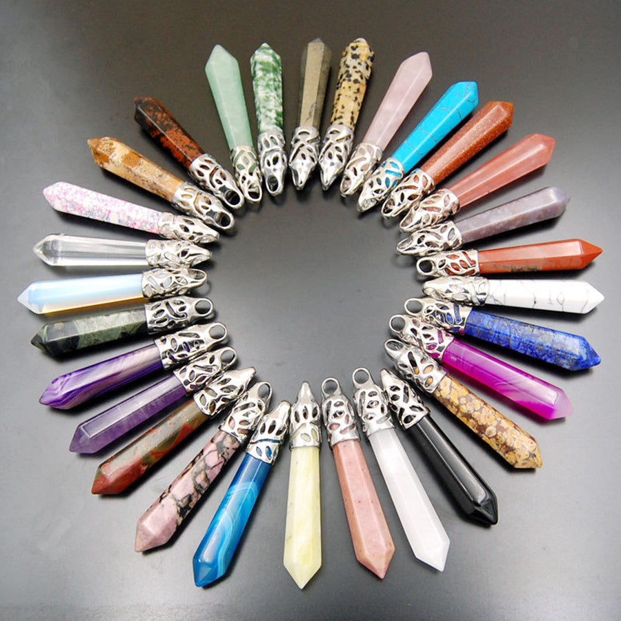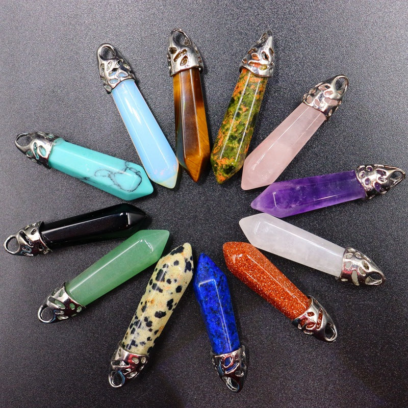 This faux crystal pendant features a hexagonal bullet shape, perfect for creating your own necklace. Use it as a unique jewelry accessory.
