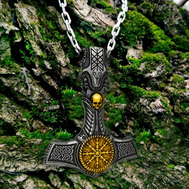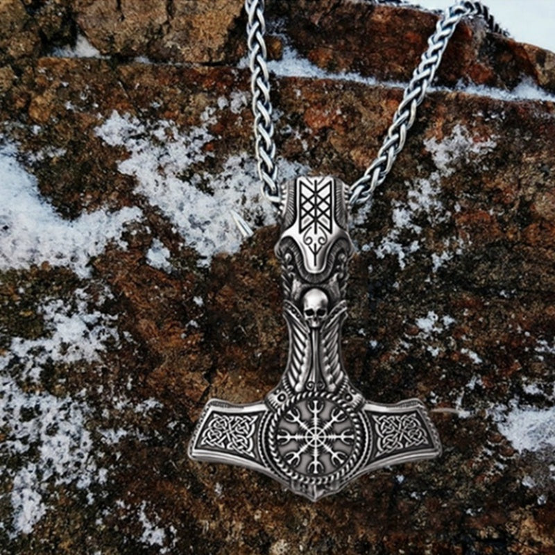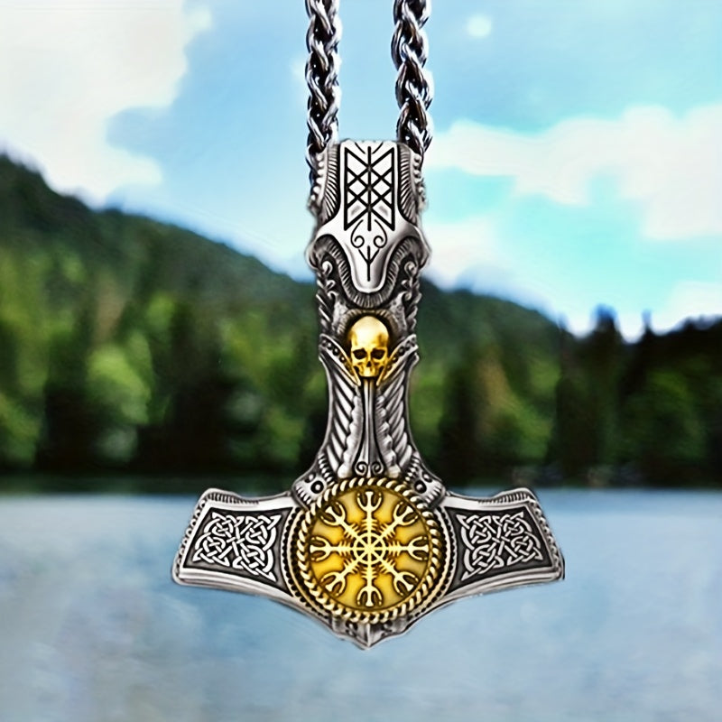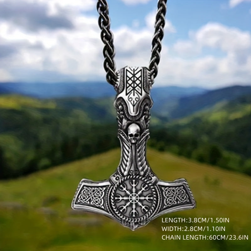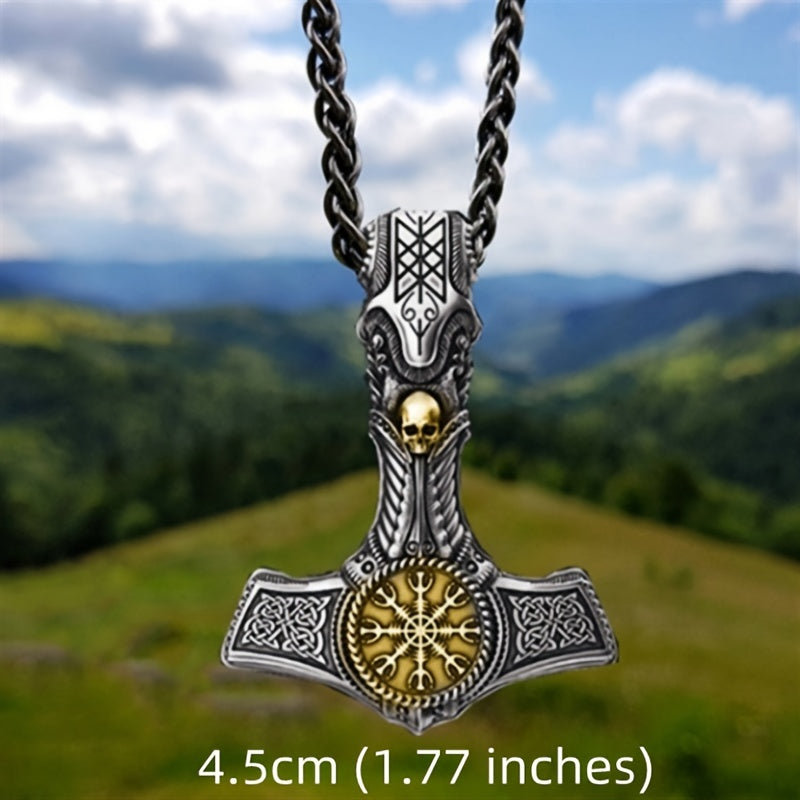 Nordic Men Viking Tuten Hammer Pendant Necklace Punk Skull Amulet Jewelry