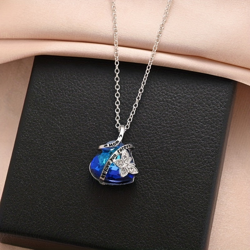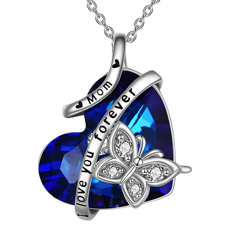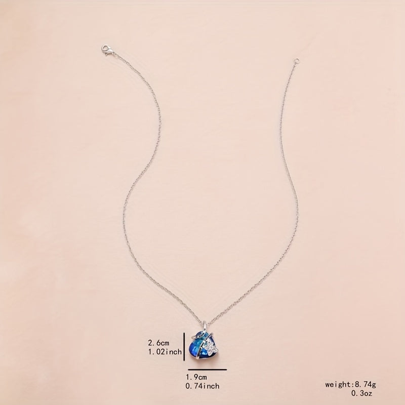 This stunning ocean heart necklace features a heart-shaped sapphire pendant, perfect for anniversary gifts or special occasions.