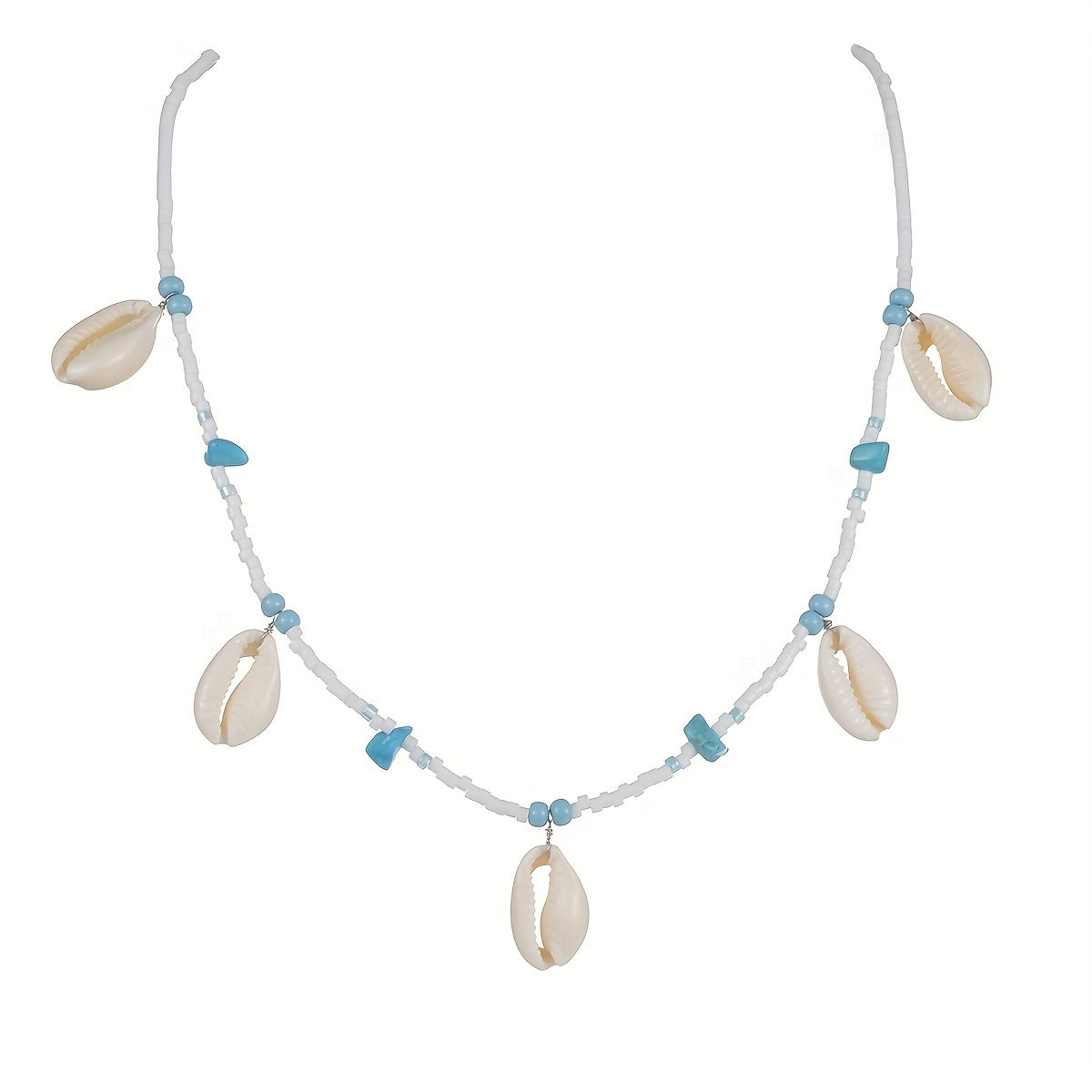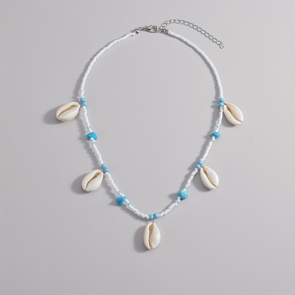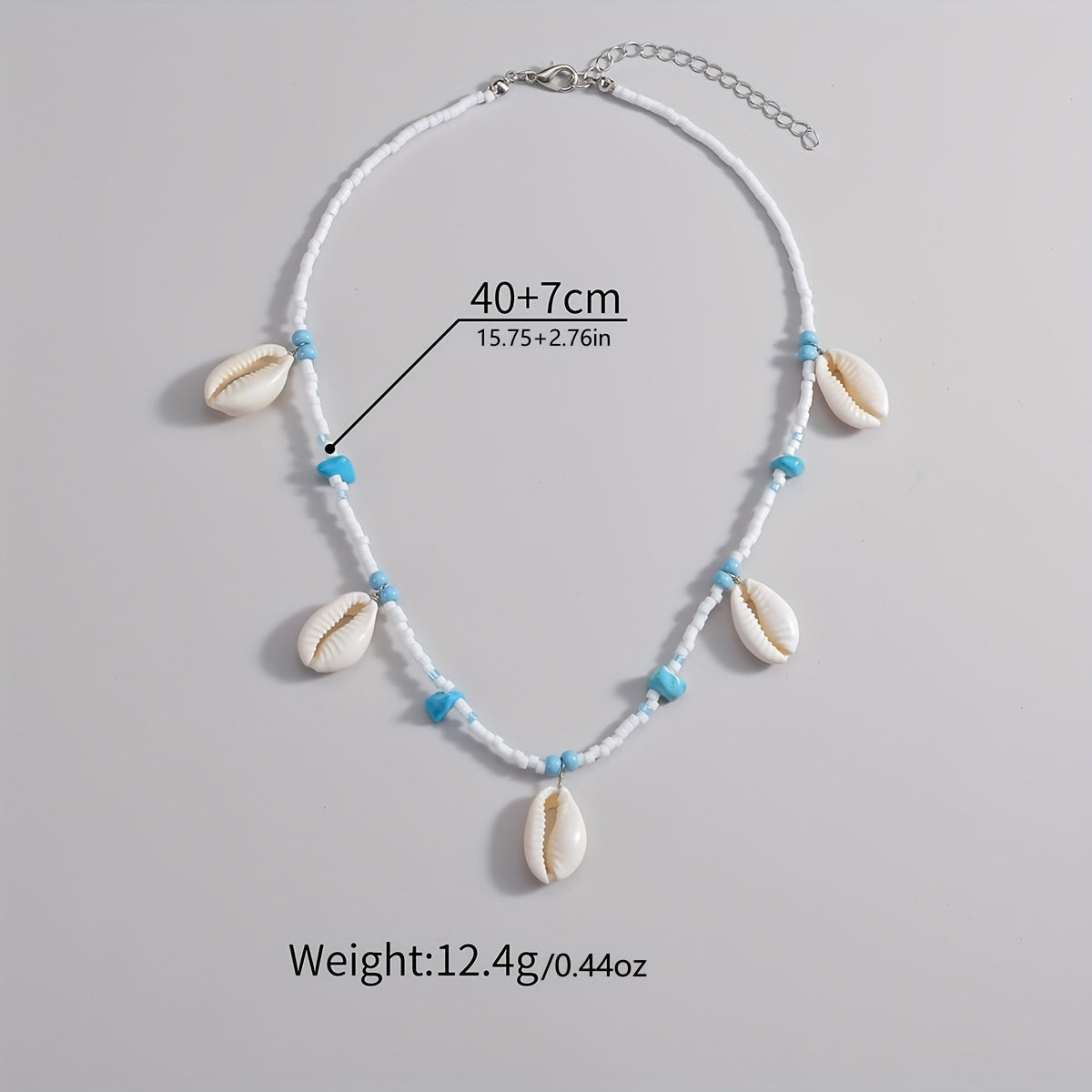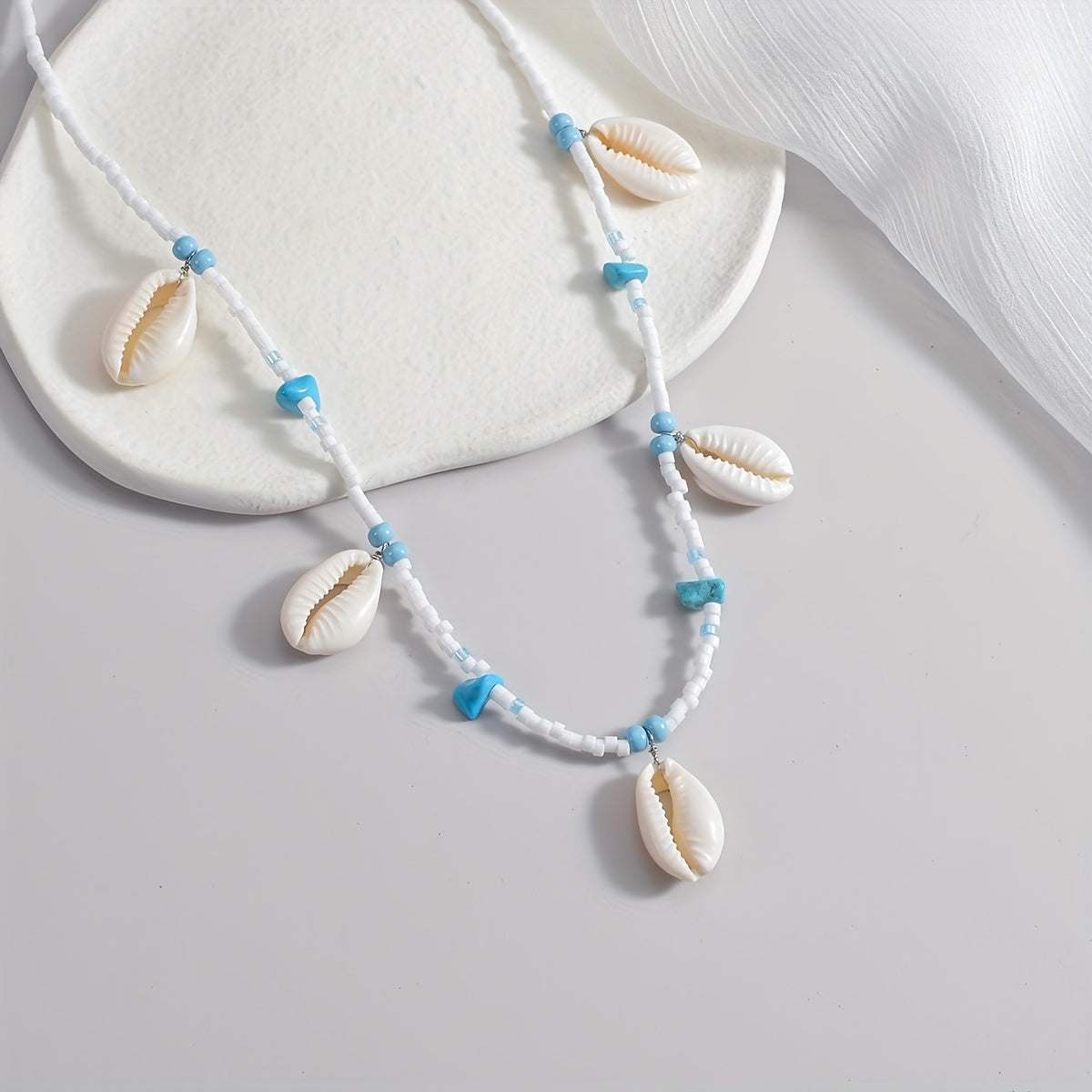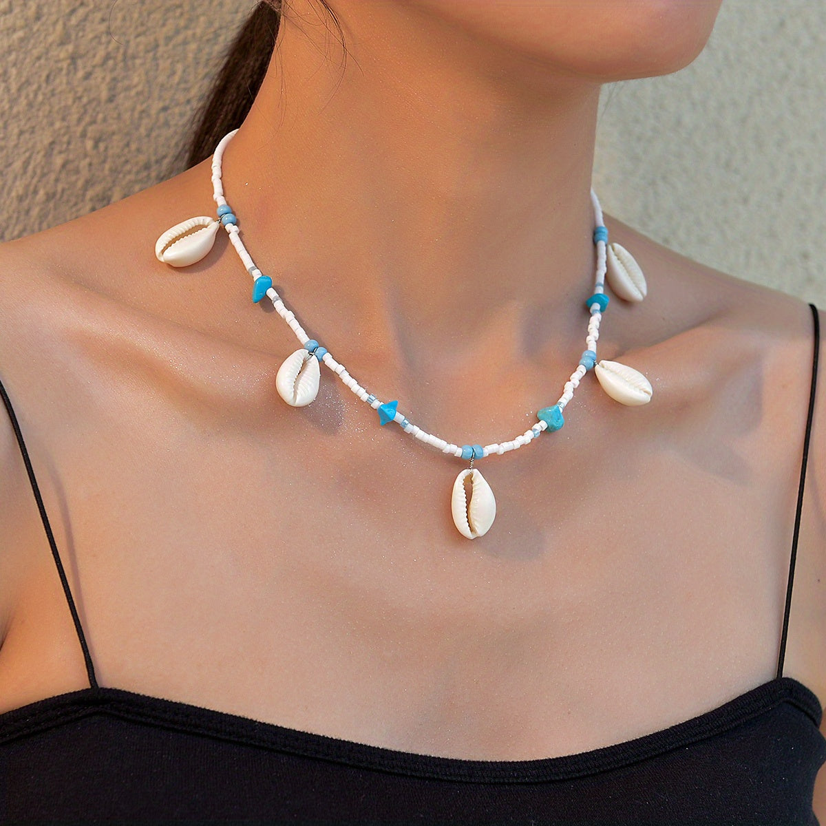 Elevate your vacation look with this beautiful ocean-themed necklace featuring shell and tassel accents.