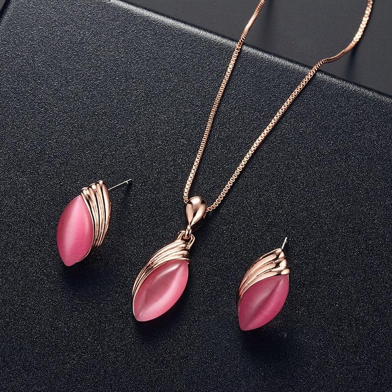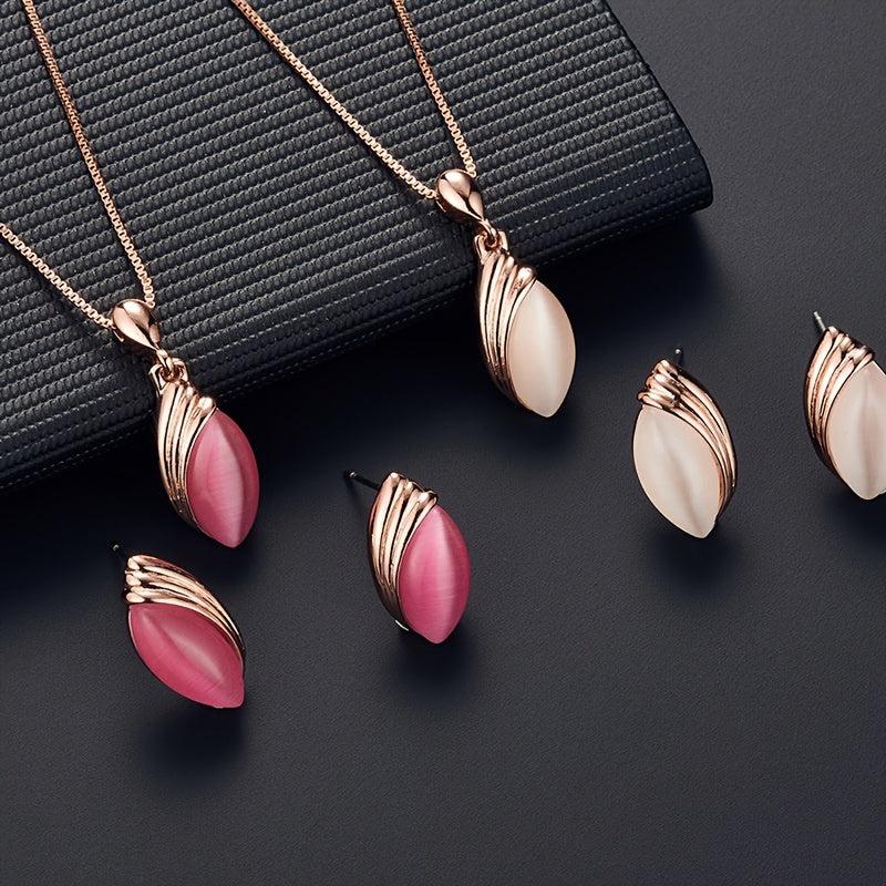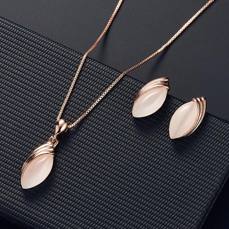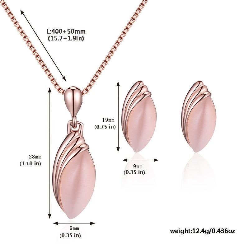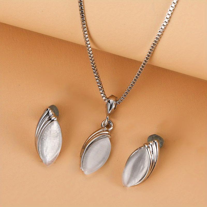 Elegant jewelry set featuring an oval shape pendant necklace and matching stud earrings. Perfect for birthdays, evening parties, and as a special gift.