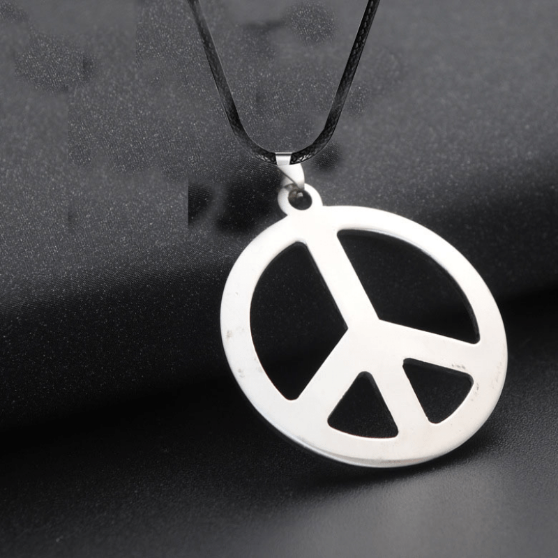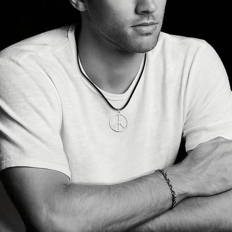 Show your support for peace with this anti-war pendant necklace made of stainless steel. Perfect accessory for men.