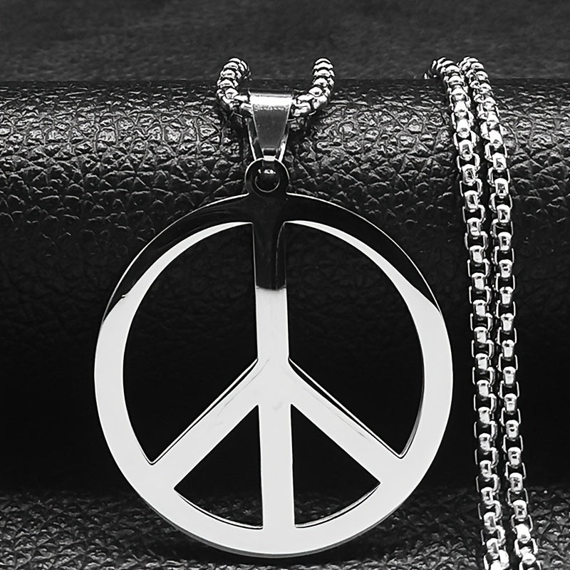 Peace Sign Necklace Hippie Necklaces For Men Stainless Steel Chain