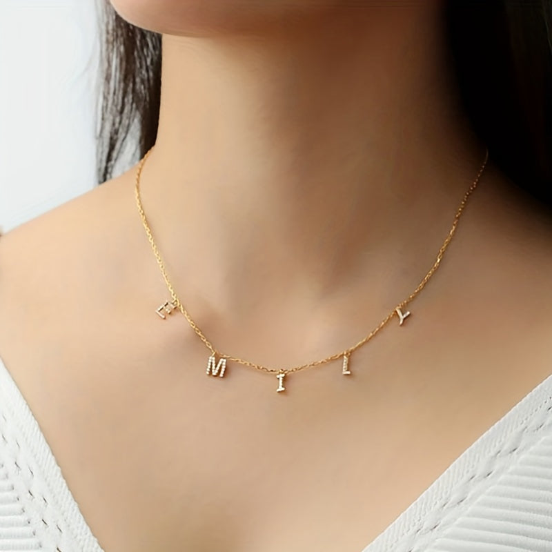 This custom stainless steel necklace features a zircon initial nameplate with stunning crystal accents. Makes a perfect statement piece or thoughtful home gift.