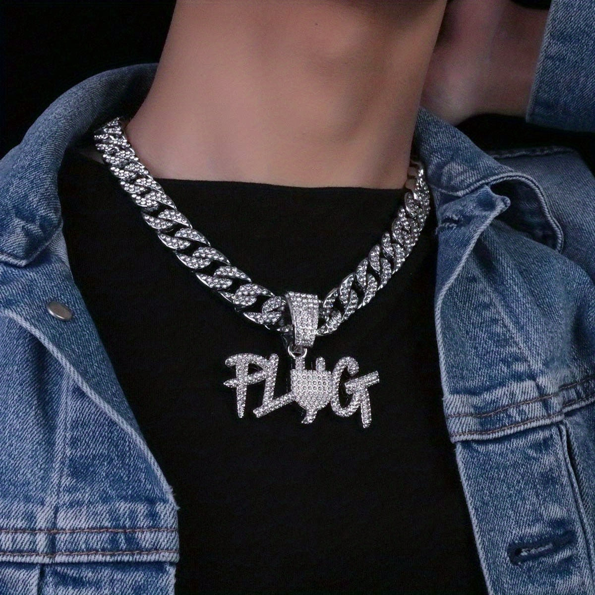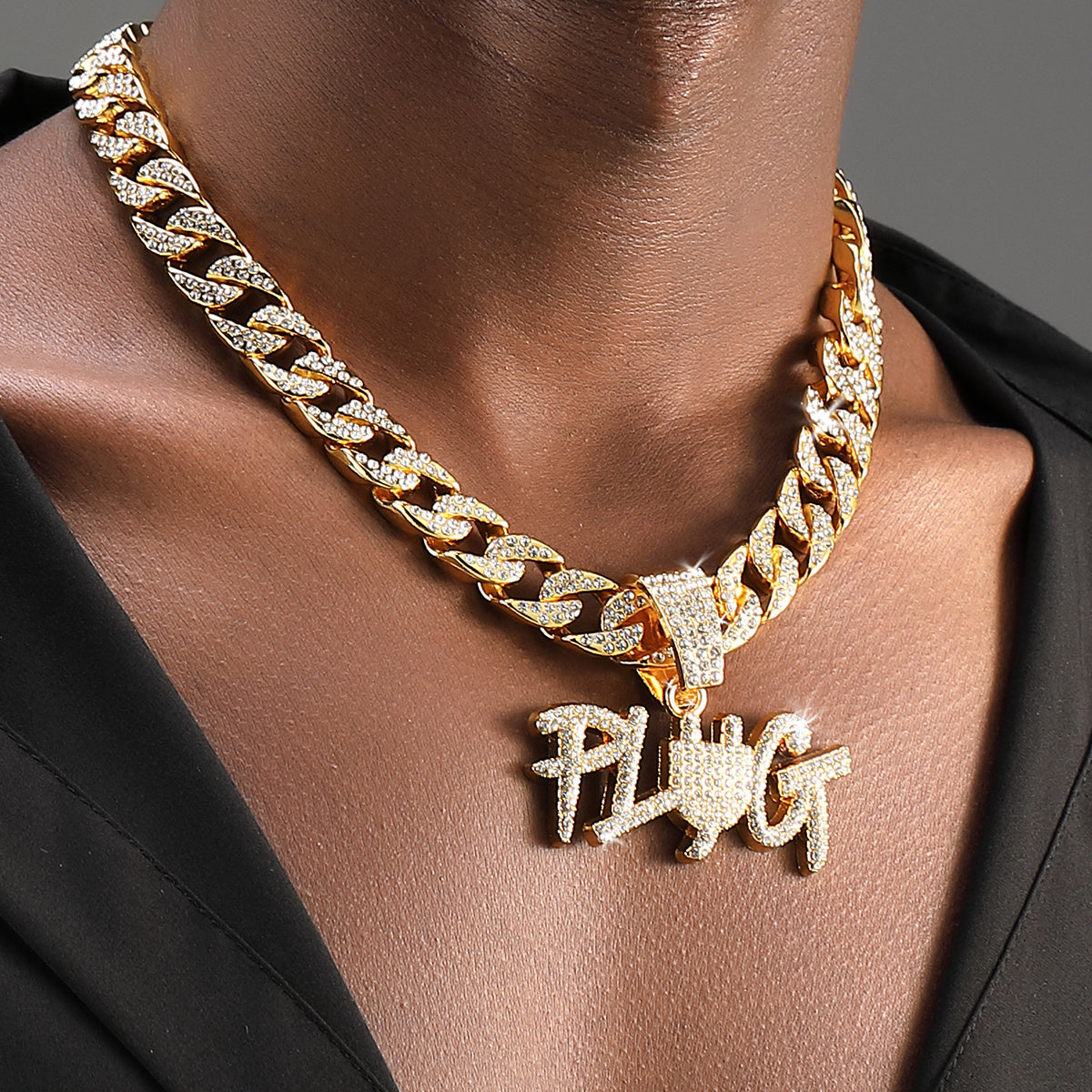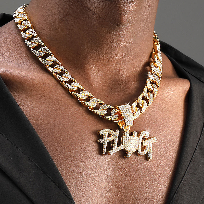 PLUG Pendant Cuban Chain Necklace Hip Hop Jewelry