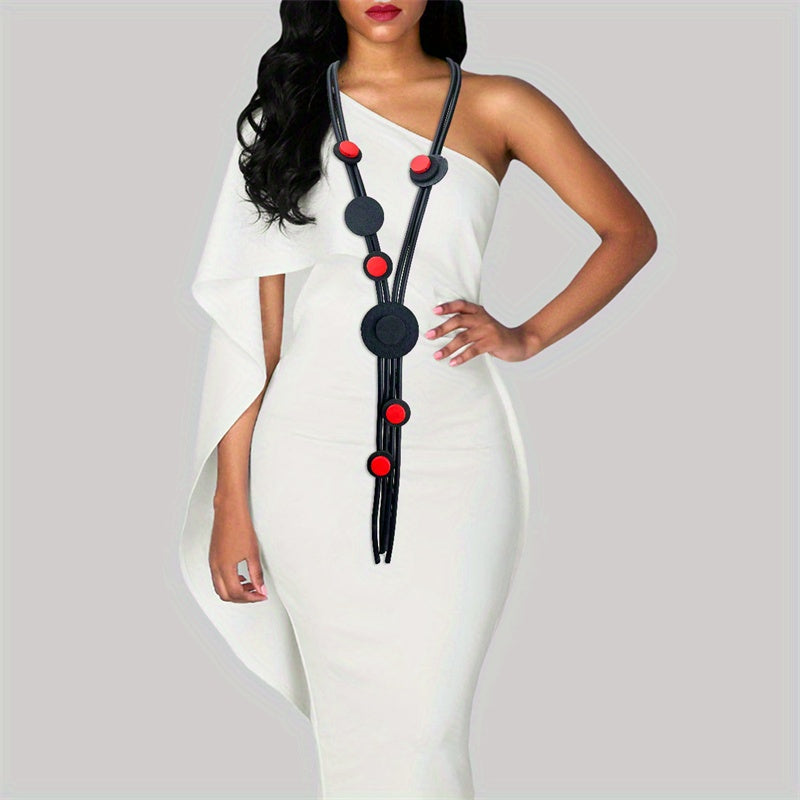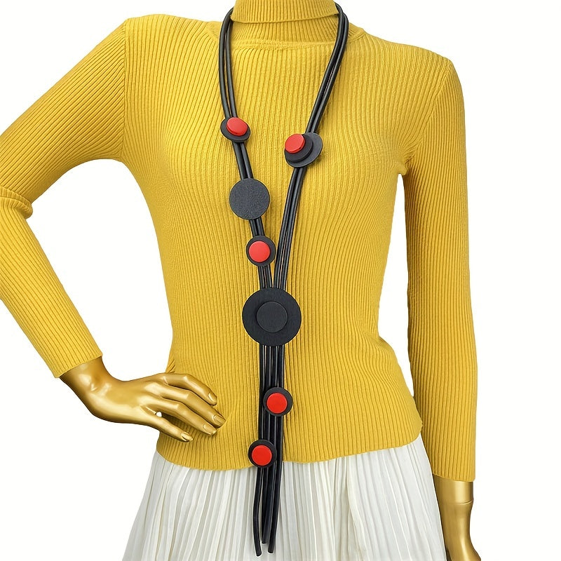 Add a touch of vintage ethnic style to your look with this punk wooden necklace. Designed for women, this long necklace is made of rubber and features unique charm.