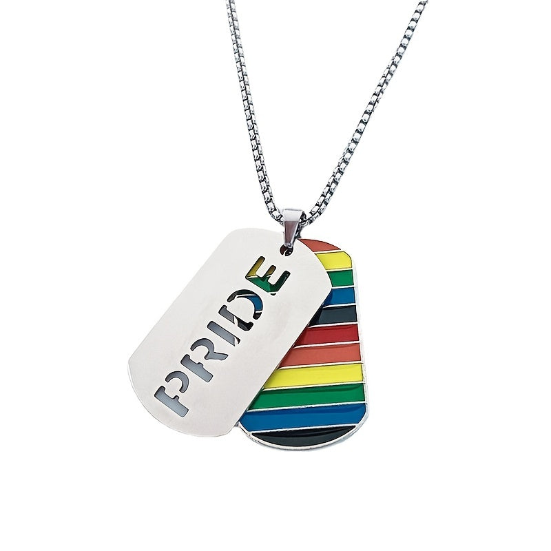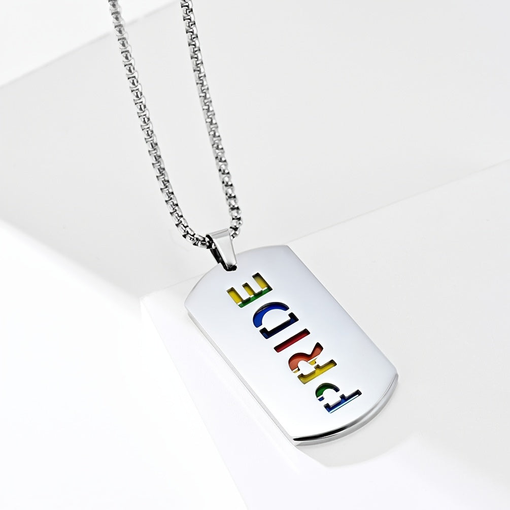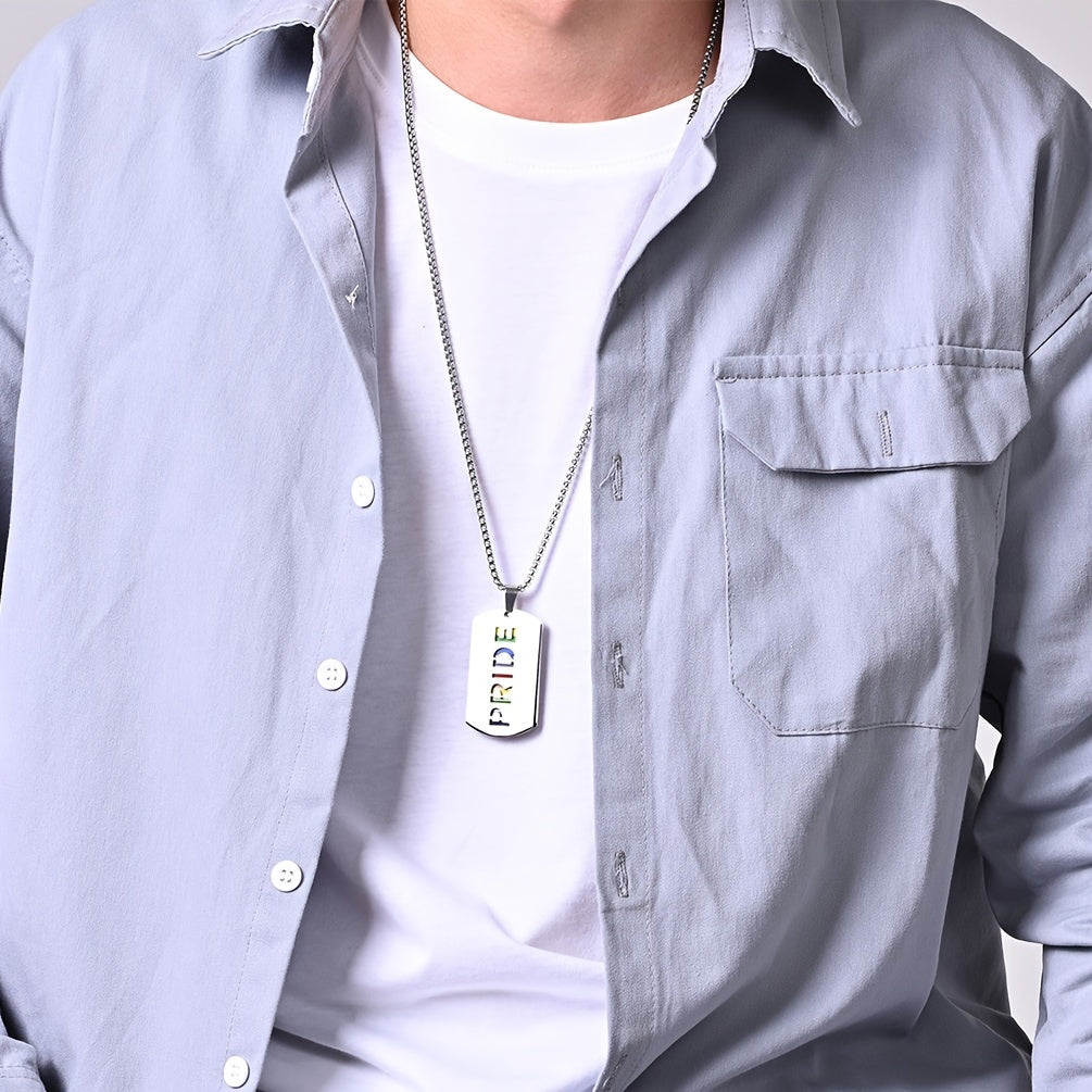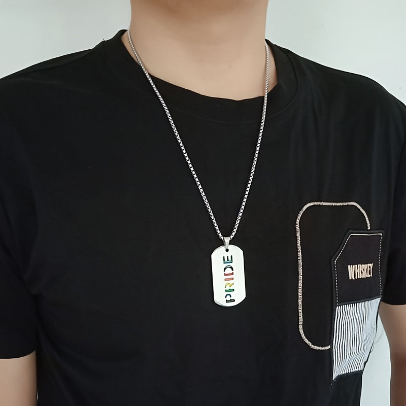 Show off your colorful style with this hip hop necklace featuring a vibrant rainbow drip tide sign pendant. This stainless steel pendant is a bold accessory for men.