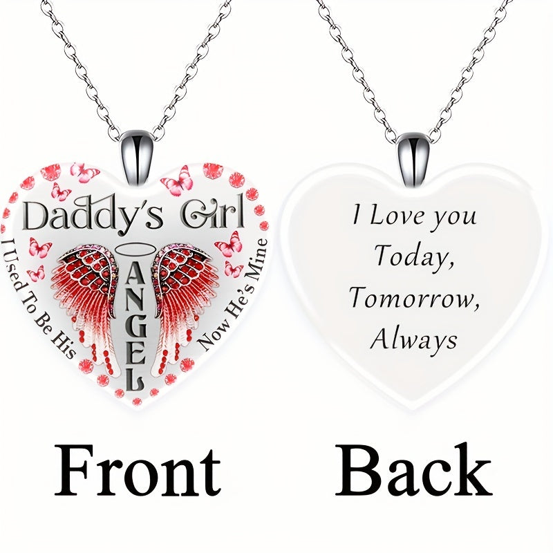 Red Angel Love Heart Crystal Pendant Necklace Women&