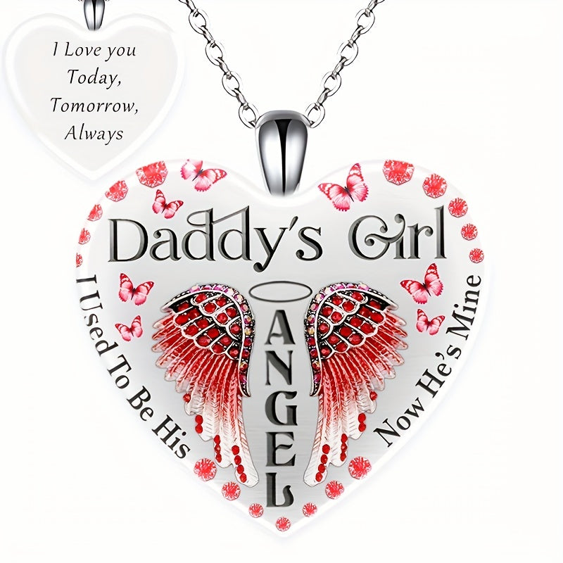 Stunning red angel love heart crystal pendant necklace perfect for Christmas banquets, holiday parties, and birthdays.