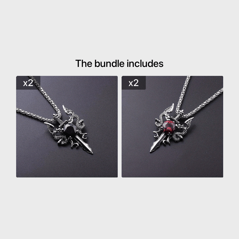 Retro Couple Knight Double Dragon Cross Sword Pendant Necklace