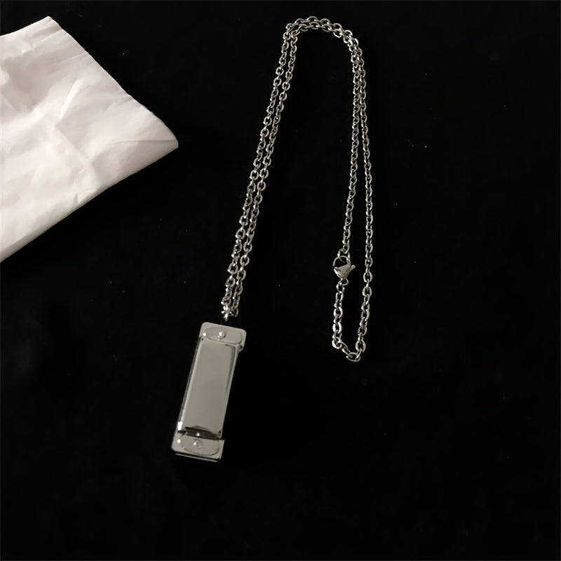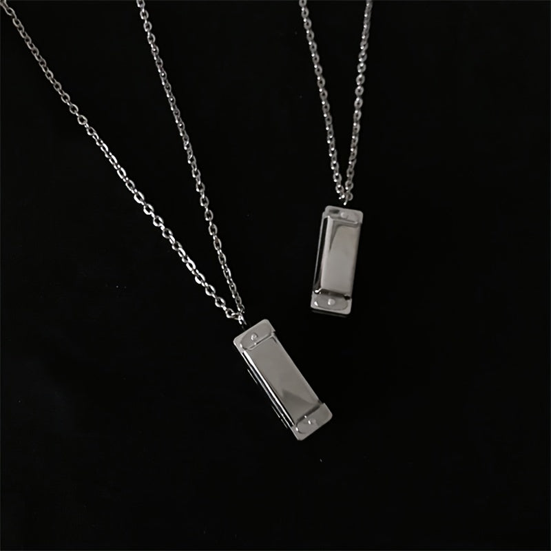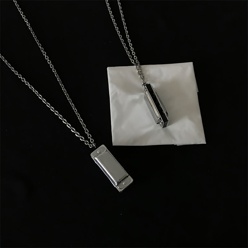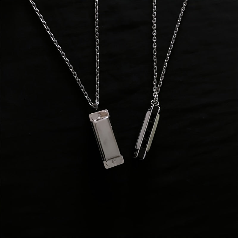 This retro small harmonica pendant necklace is perfect for music lovers or those who appreciate unique accessories. The necklace features a four-hole whistle design and is suitable for both men and women.