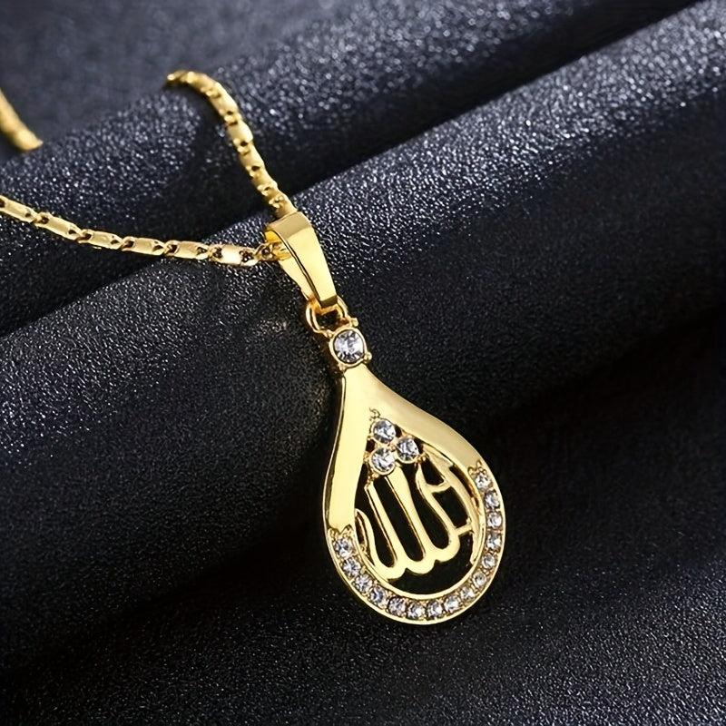 Retro Punk Religious Allah Quran Water Drop Pendant Necklace
