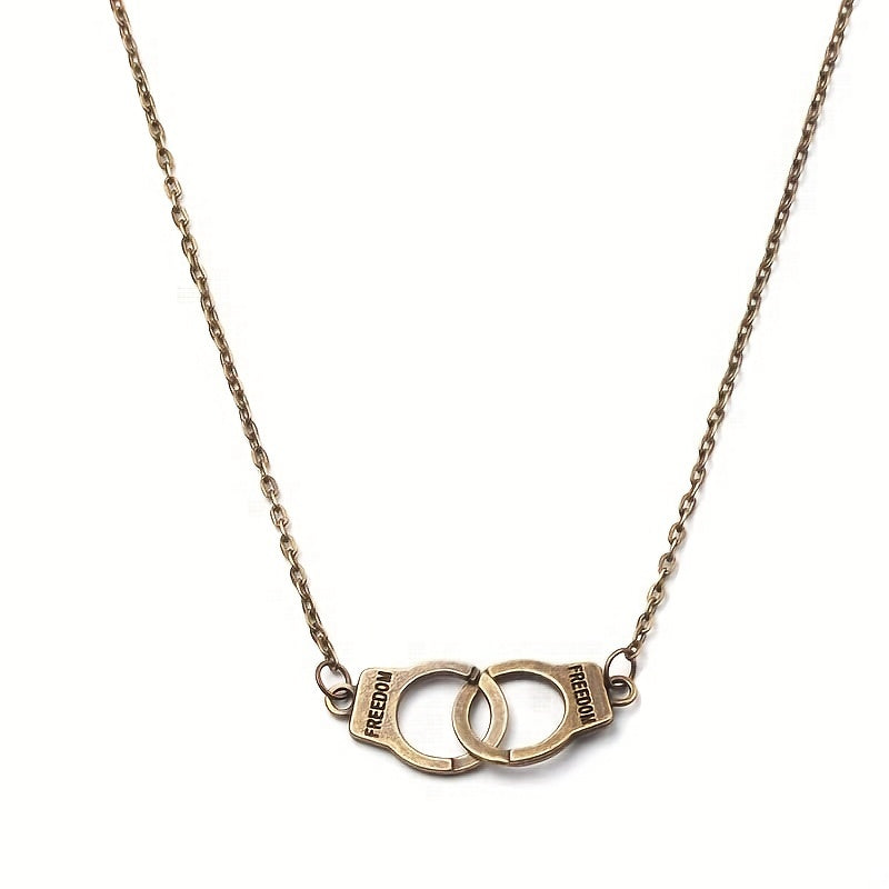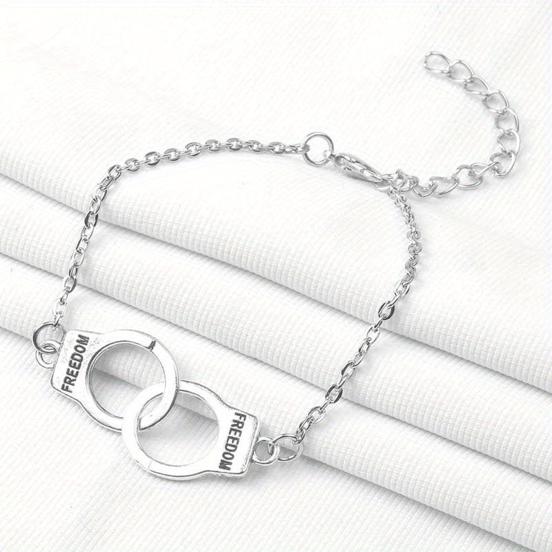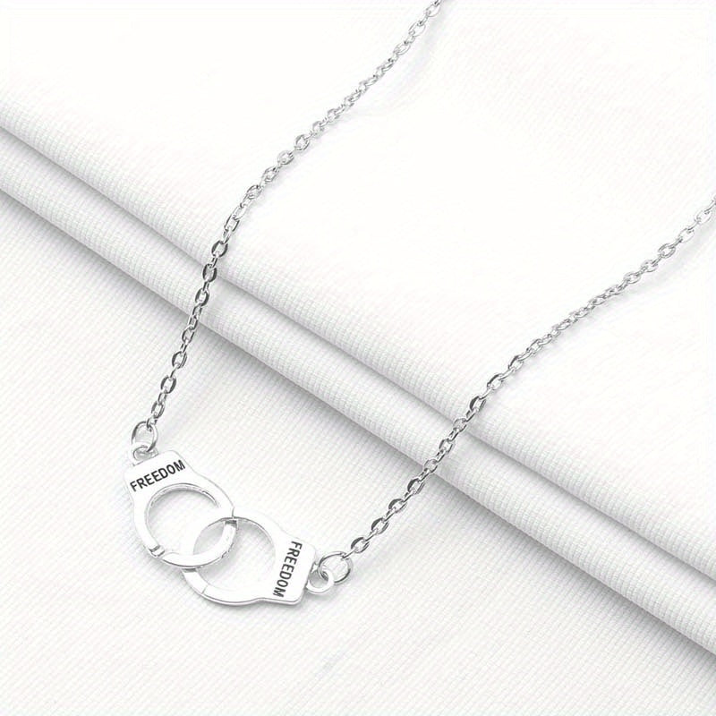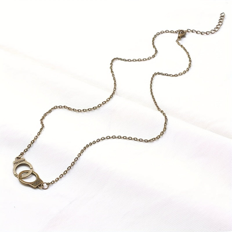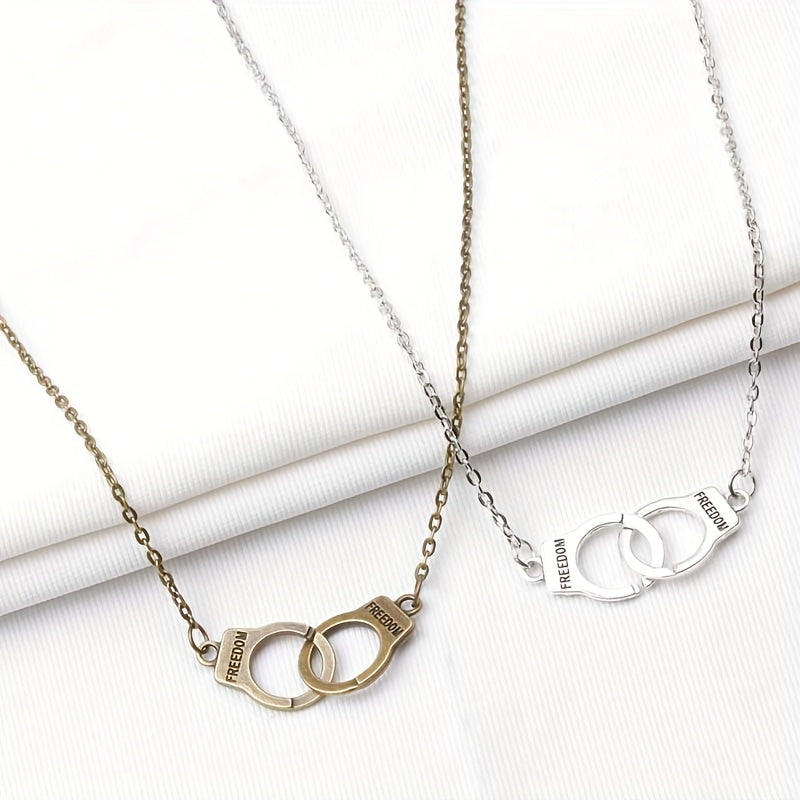 Add a touch of retro charm with this handcuffs necklace and bracelet set. Perfect for parties and creative fashion statements.