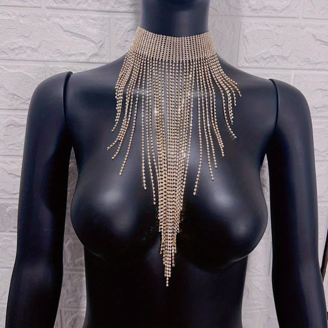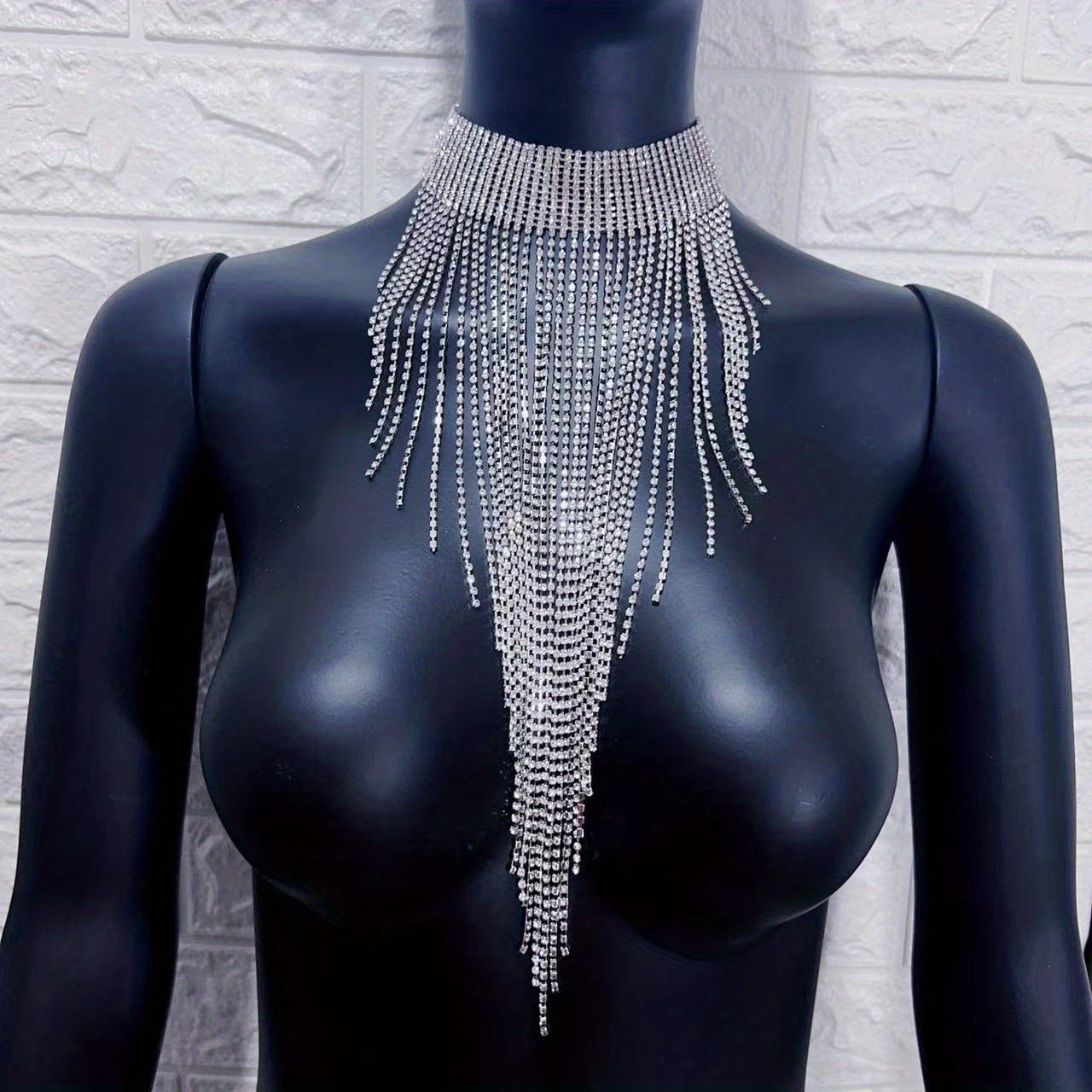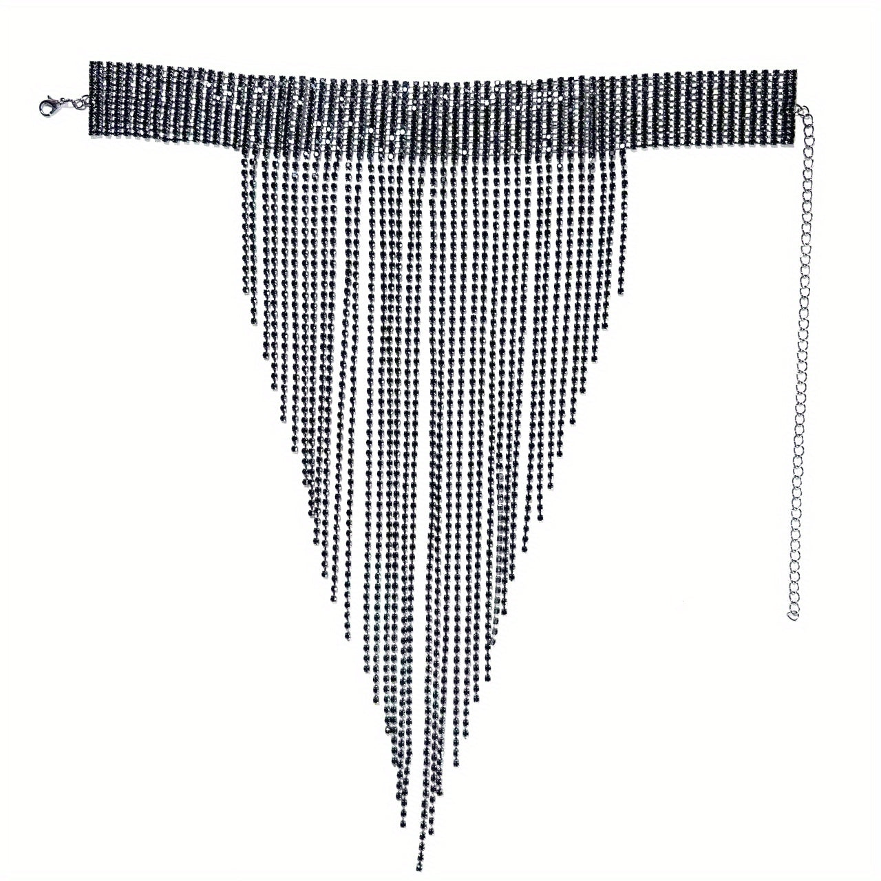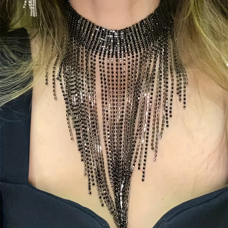 Get ready to shine with this extravagant rhinestone necklace featuring long tassels. Perfect for parties and special occasions.
