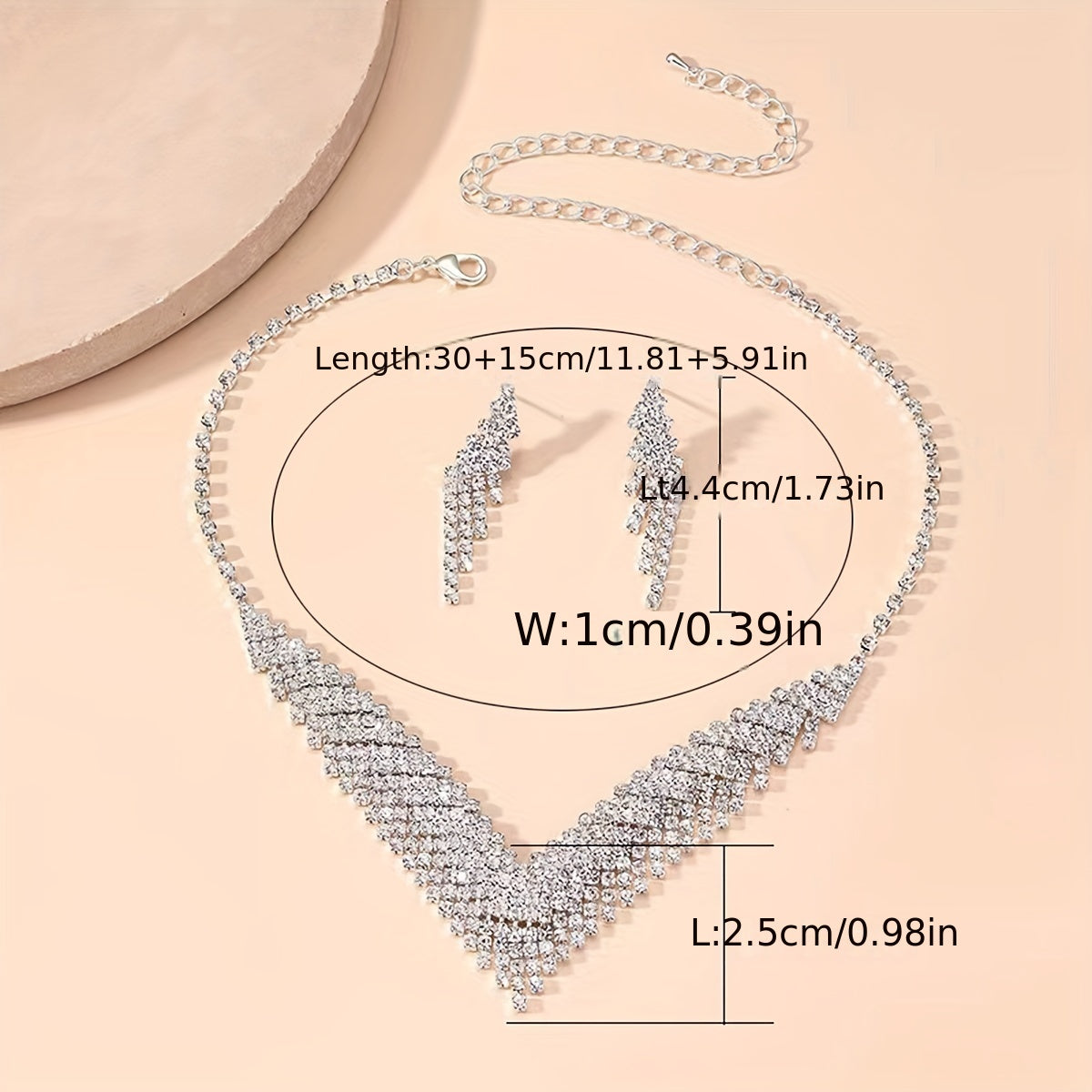 Get ready to dazzle with this stunning 3pcs jewelry set featuring rhinestone inlays. Perfect for evening parties, cocktail parties, and special occasions. An elegant gift for her.