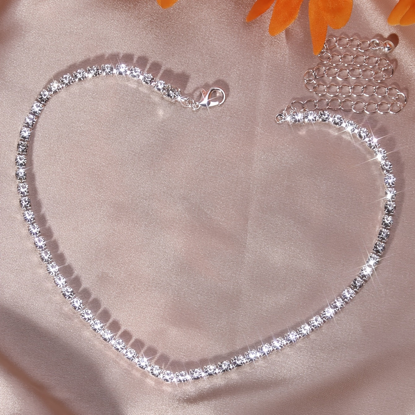 Enhance your elegance with this stunning rhinestone necklace. Perfect for parties, weddings, and banquets, this silver plated jewelry piece is a must-have accessory.