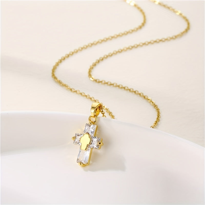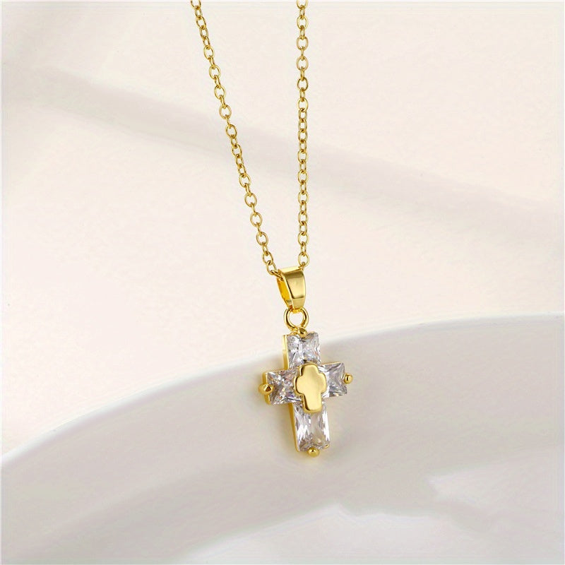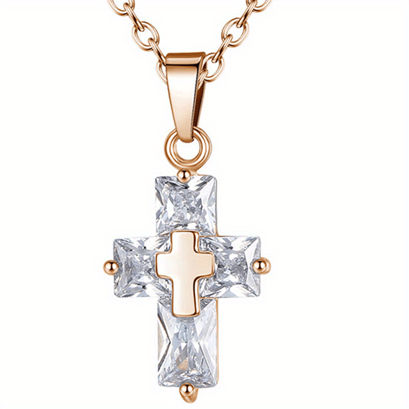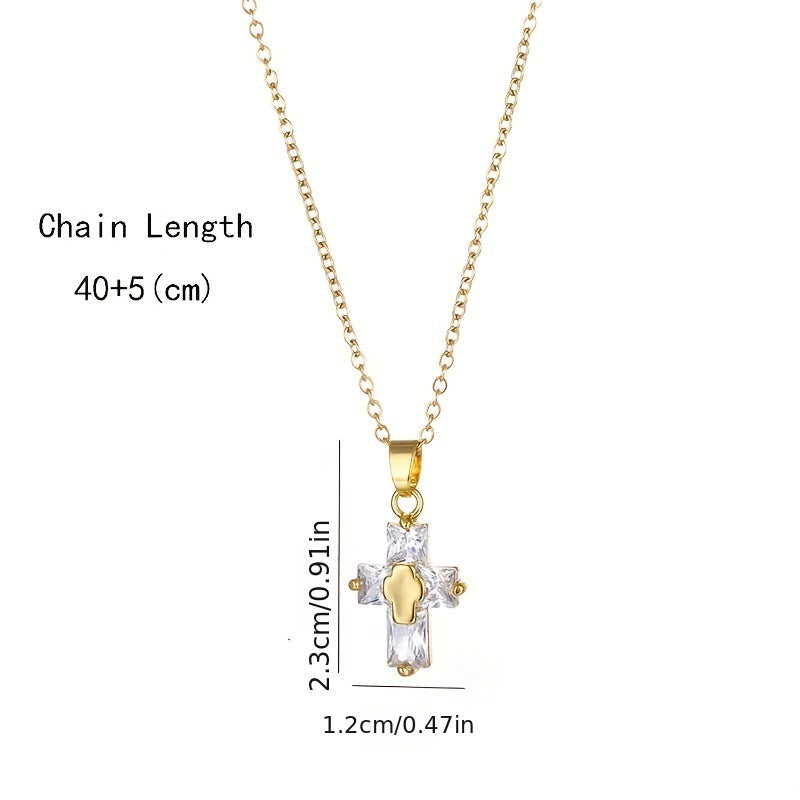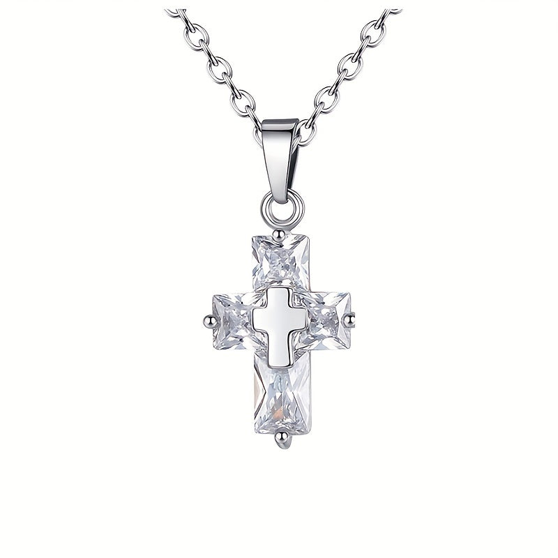 Add some sparkle to your outfit with this stunning Rhinestone Silver Double Cross Pendant Necklace. The double cross design is elegant and eye-catching.
