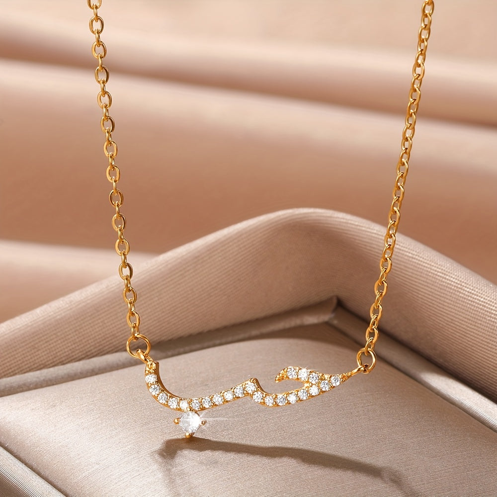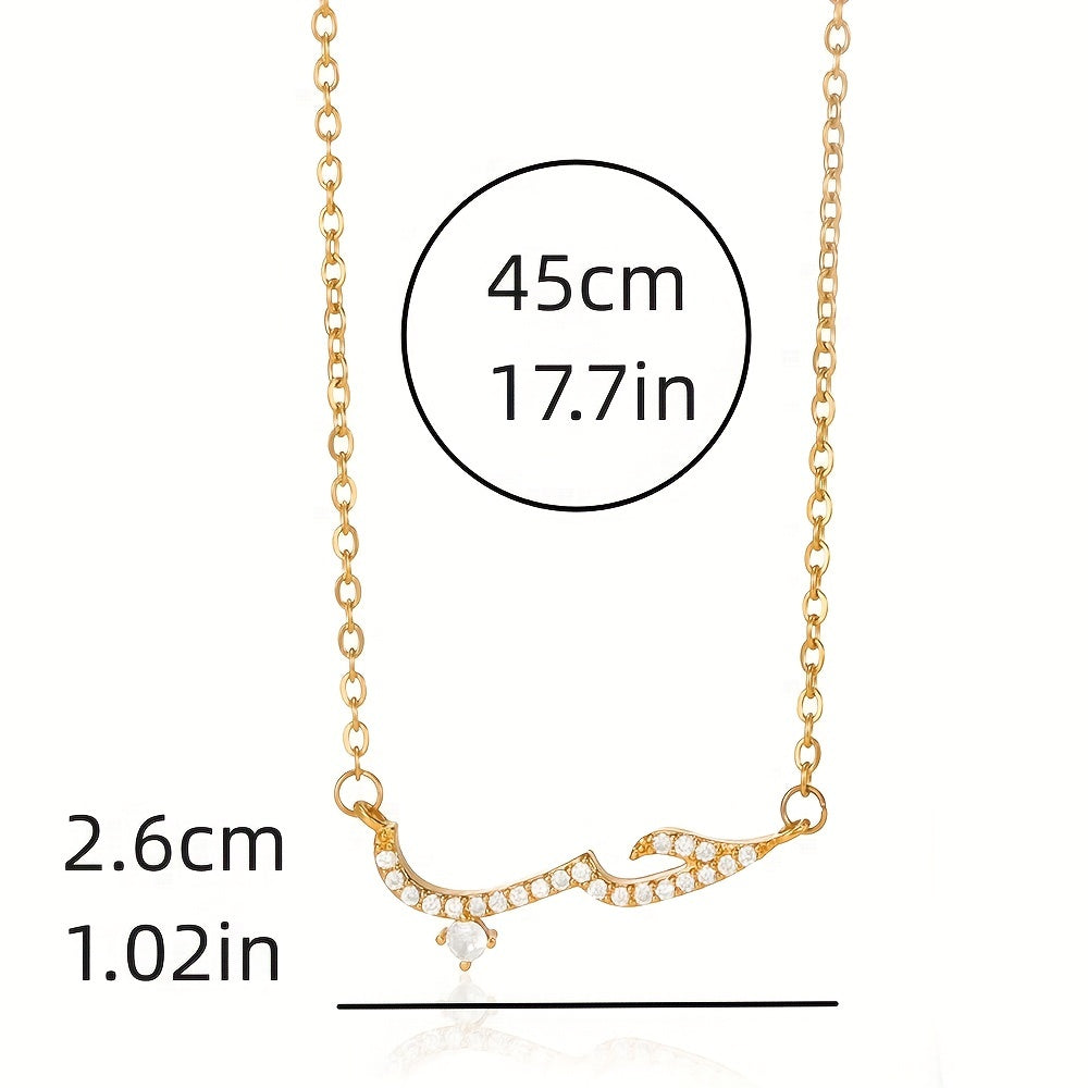 Show your romantic side with this stunning Arabic love statement necklace. Inlaid with sparkling zircon stones and plated with 18K gold, this necklace is a perfect gift for your loved one.