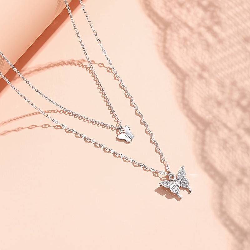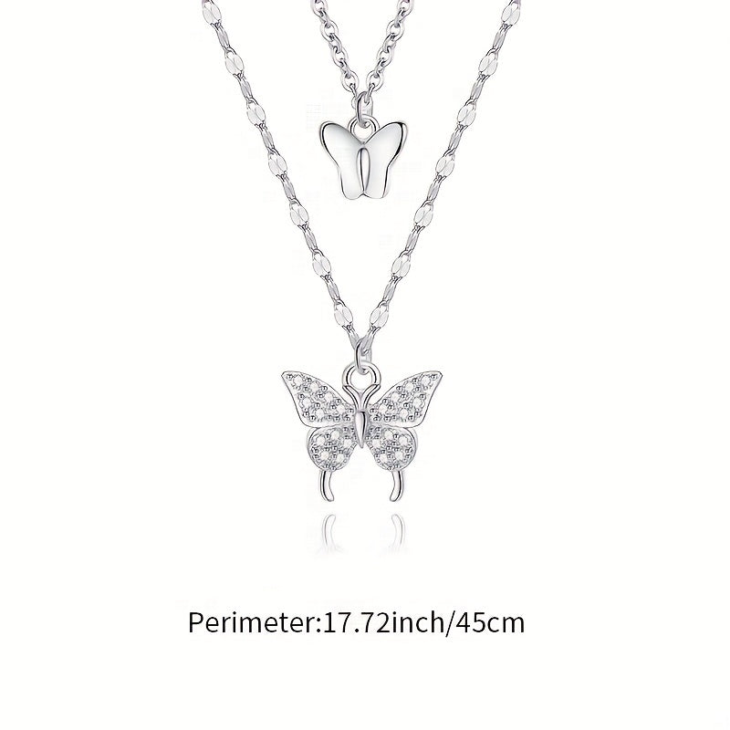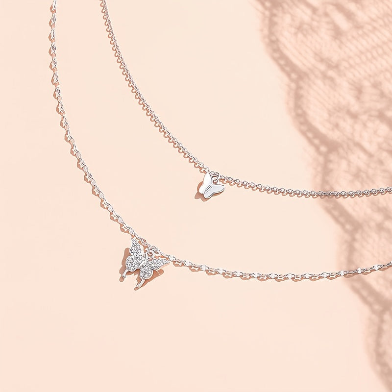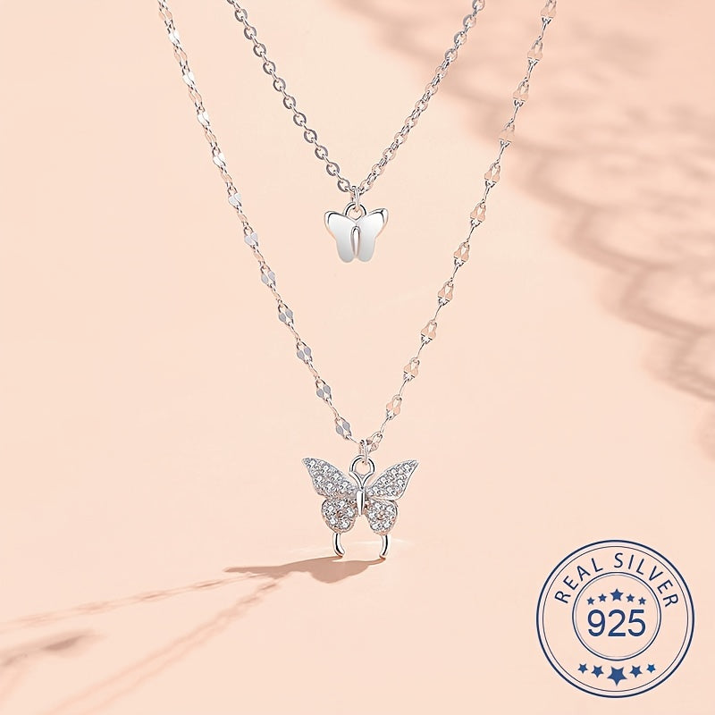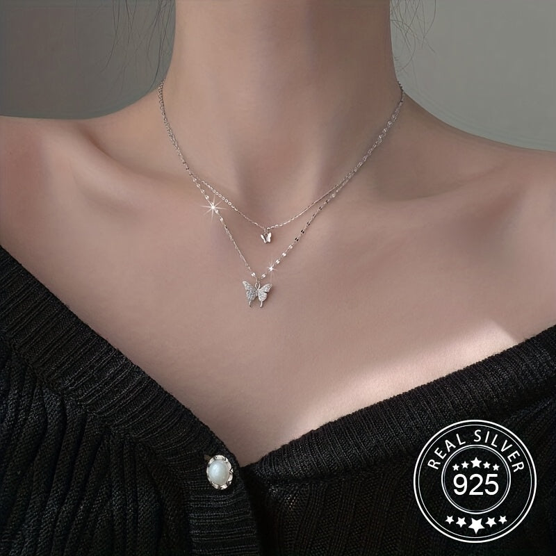 This elegant S925 sterling silver necklace features a double layer clavicle chain with a beautiful butterfly pendant. It is a perfect accessory for any occasion and makes a great birthday gift.