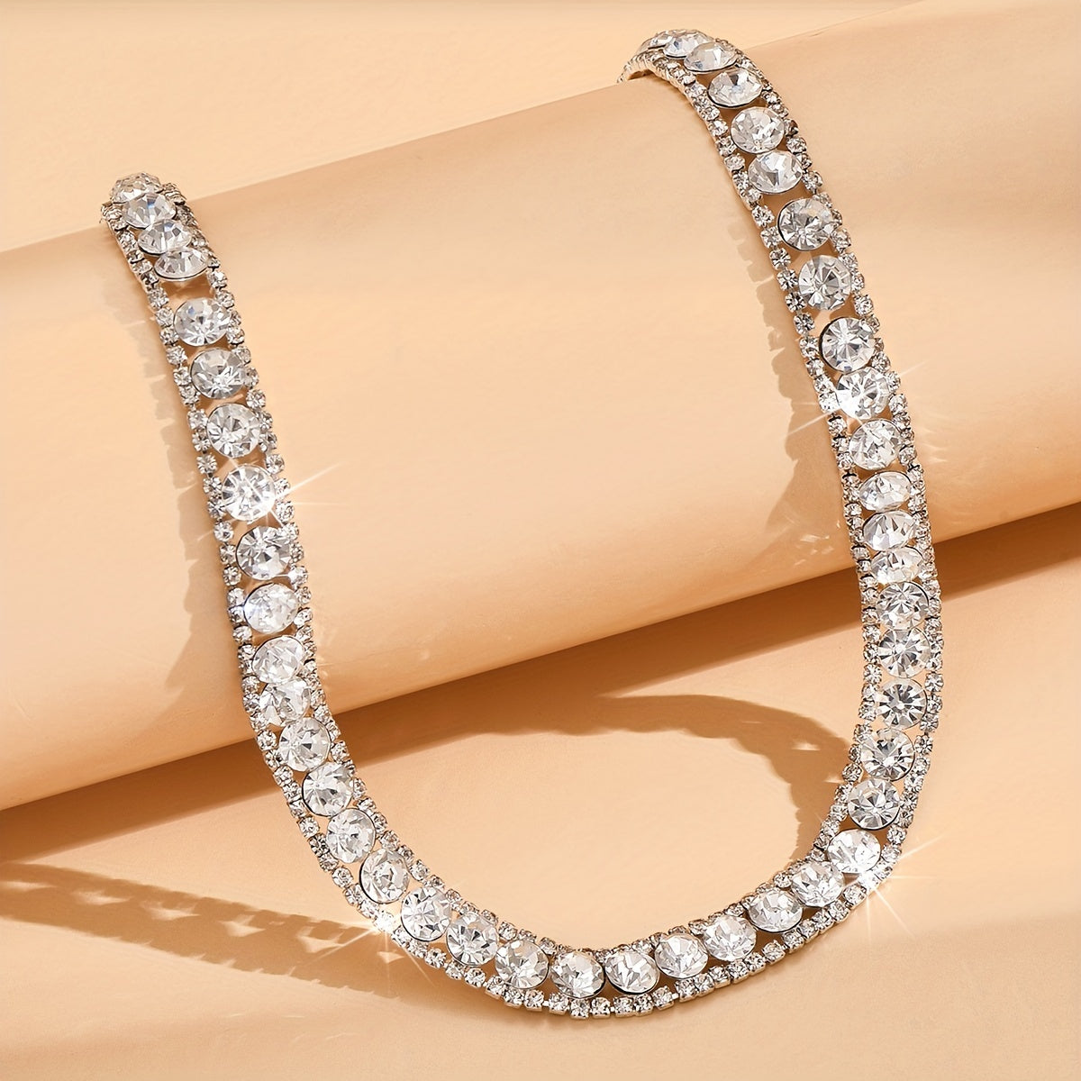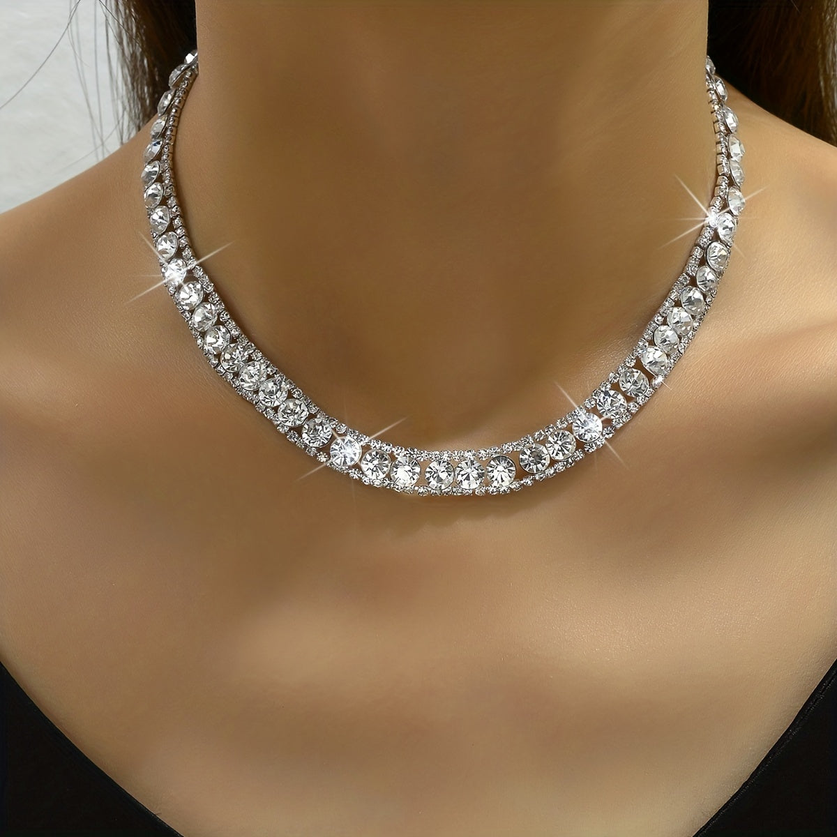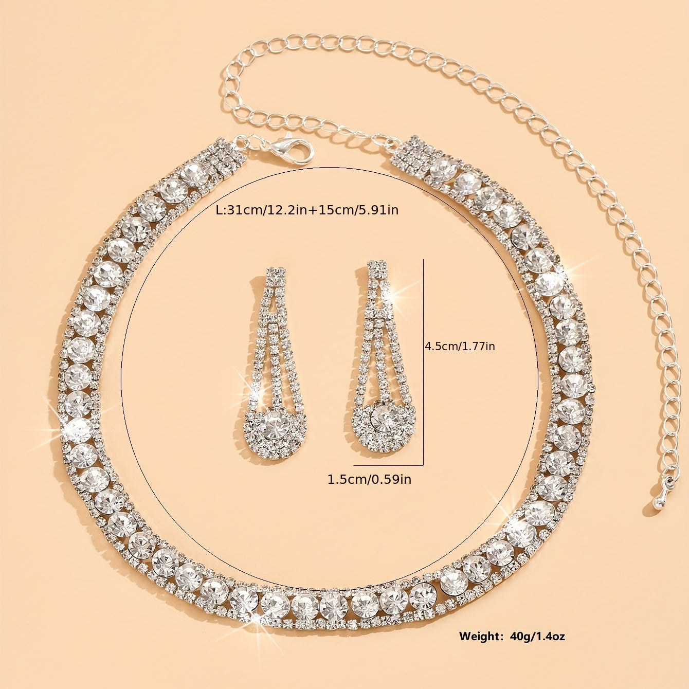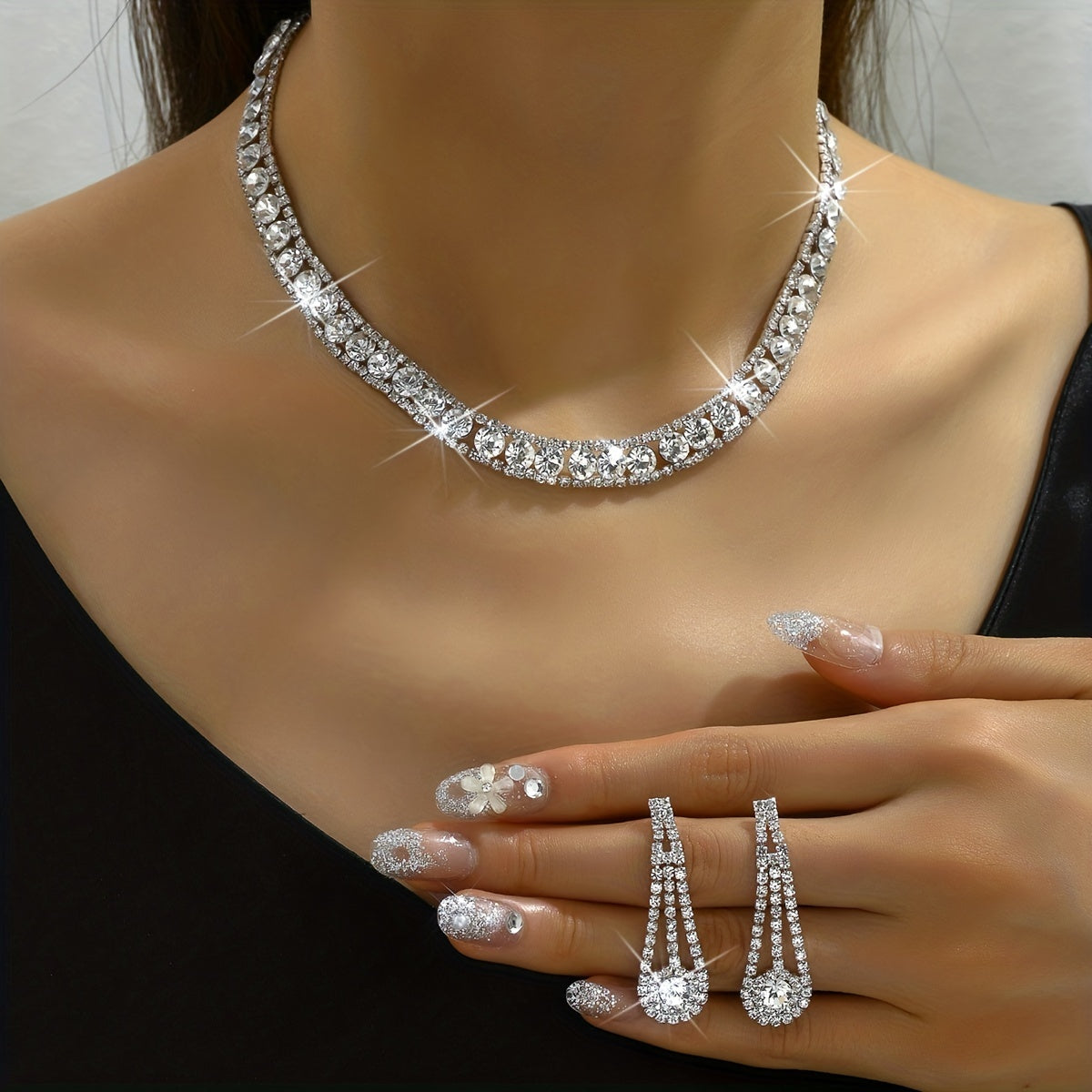 Complete your wedding look with this elegant silver plated jewelry set featuring inlaid rhinestones. Perfect for evening parties and cocktail events.