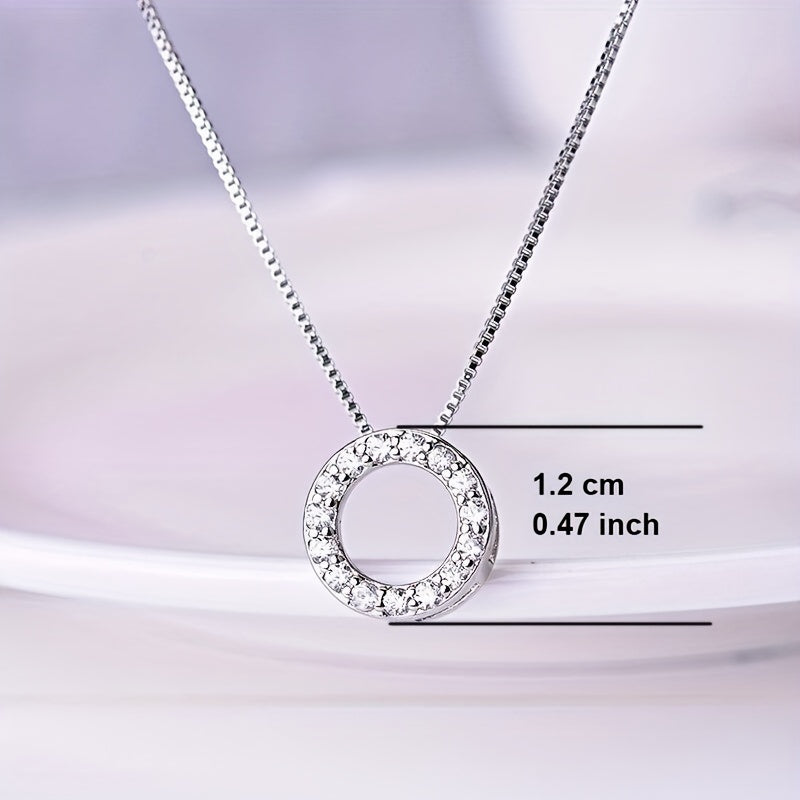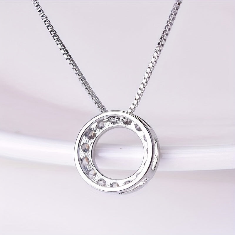 Elegant silver plated necklace with zircon circle rings pendant. Perfect for daily casual wear, adds a stylish touch to any outfit.