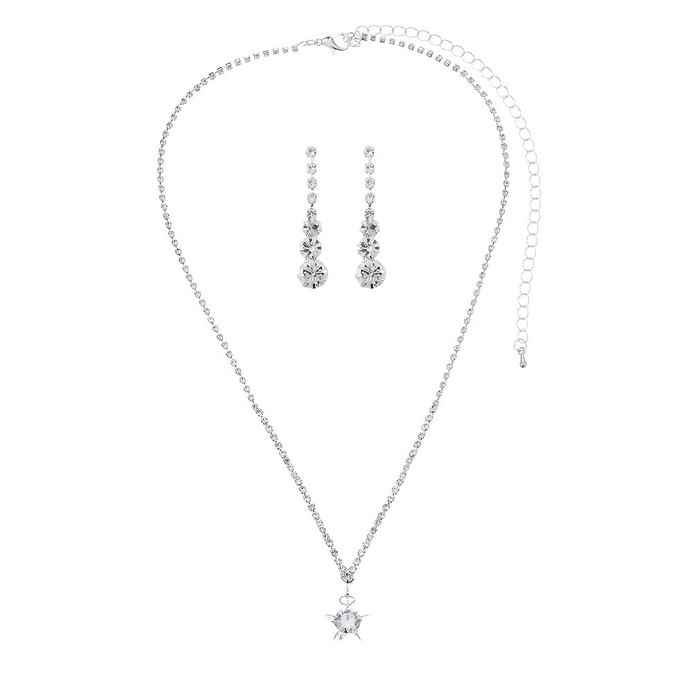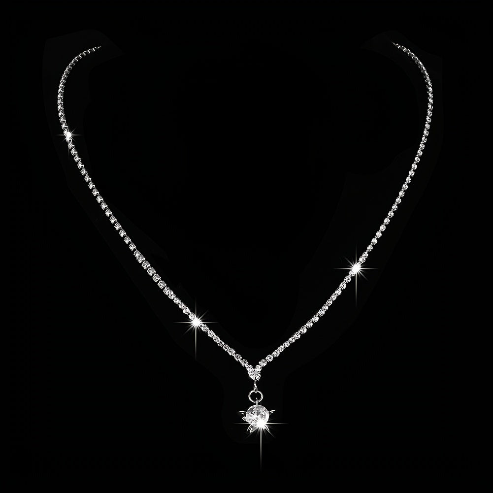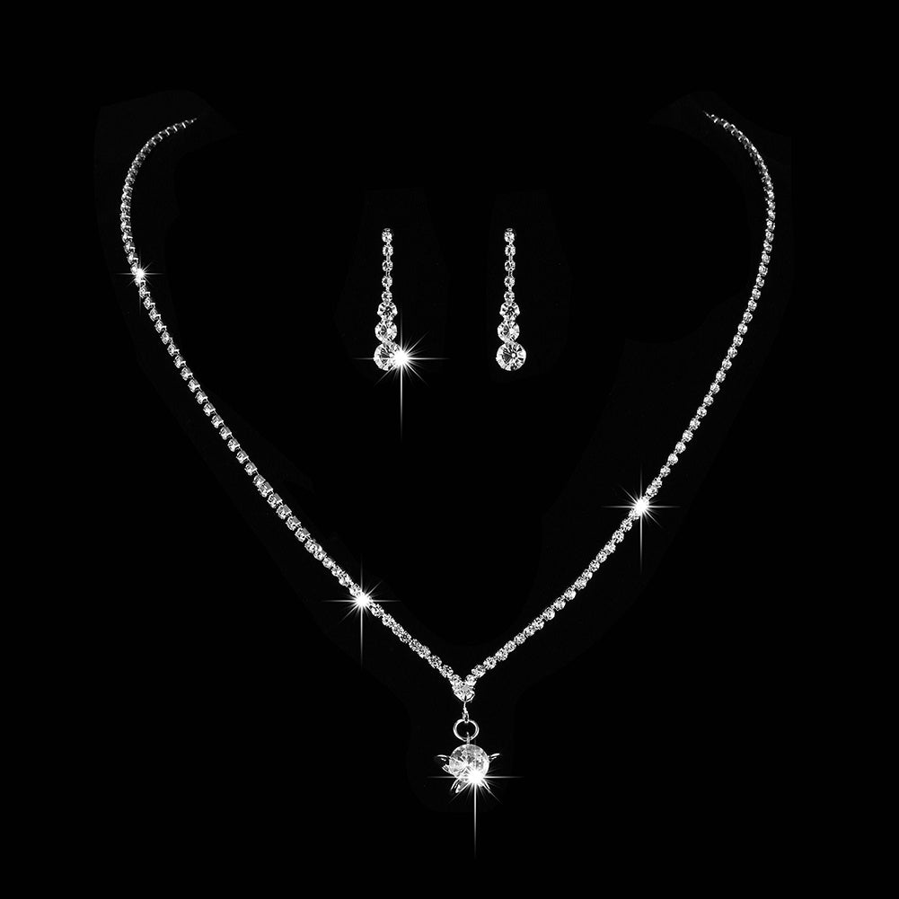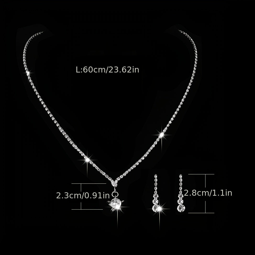 This minimalist jewelry set features a round cut sparkly pendant necklace and matching dangle earrings. Perfect for women and girls.