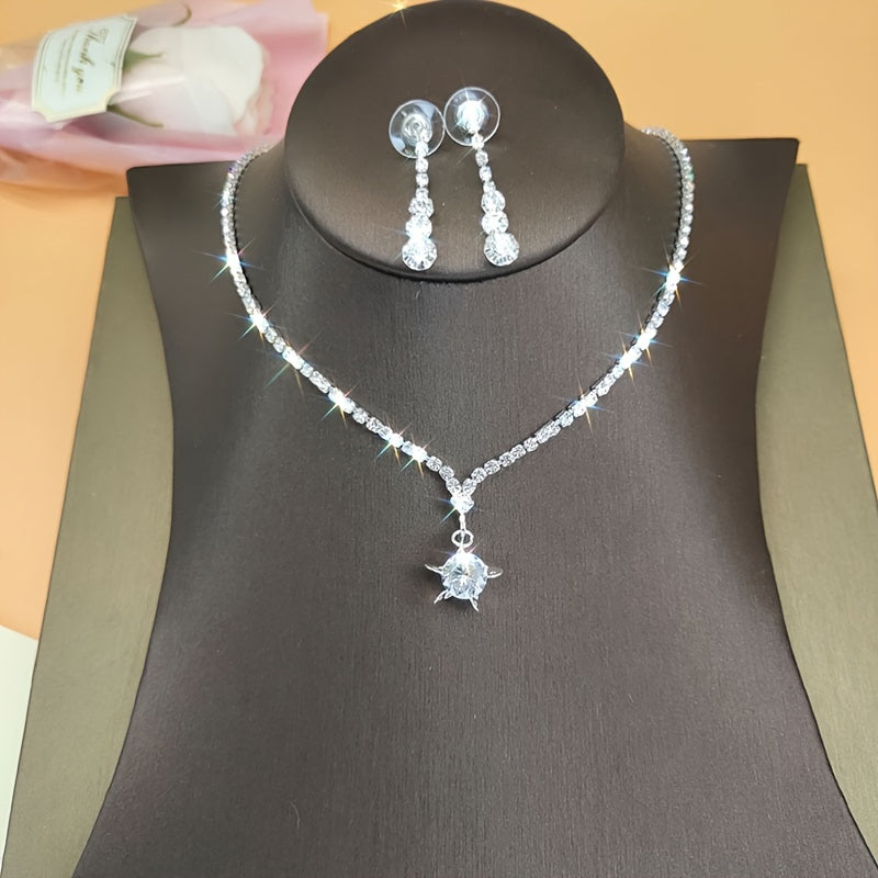 Sparkly Pendant Necklace & Dangle Earrings Set