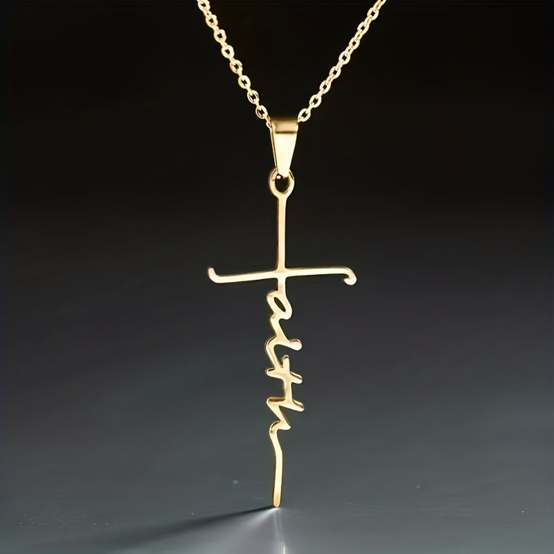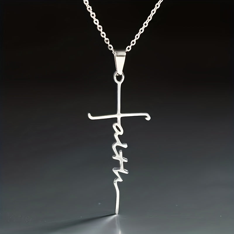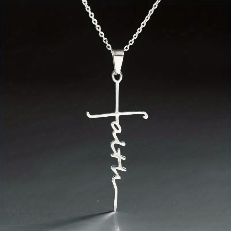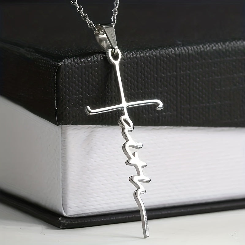 Stainless Steel Christian Cross Faith Pendant Necklace Easter Gift