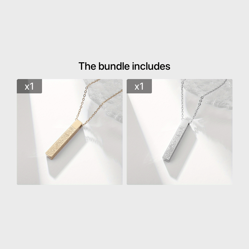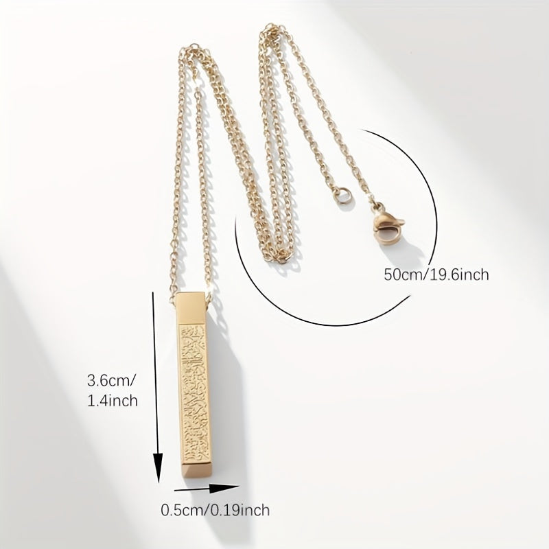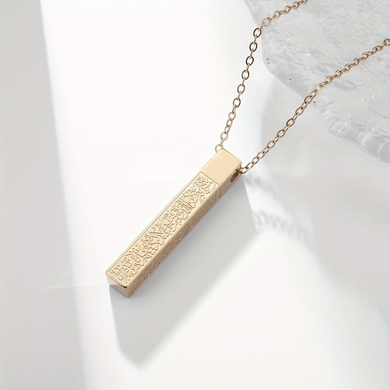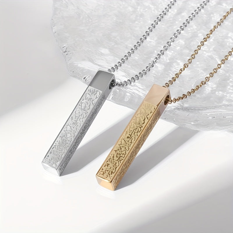 This stainless steel cube necklace features Islamic scripture engraving, making it a meaningful amulet for men.
