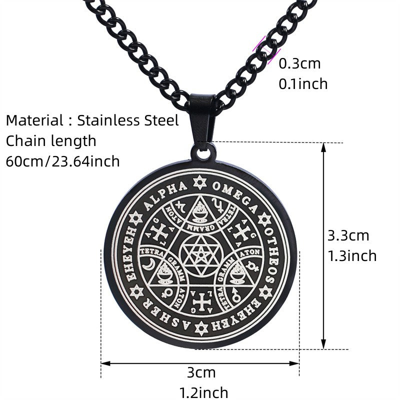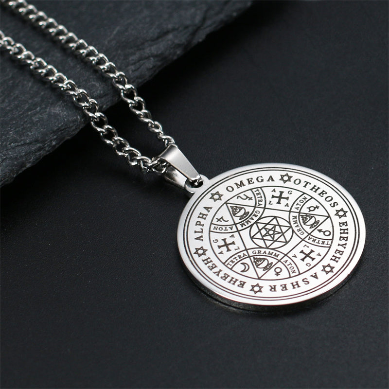 Stainless Steel Enoch Angel Magic Amulet Necklace Hip Hop Lucky Charm