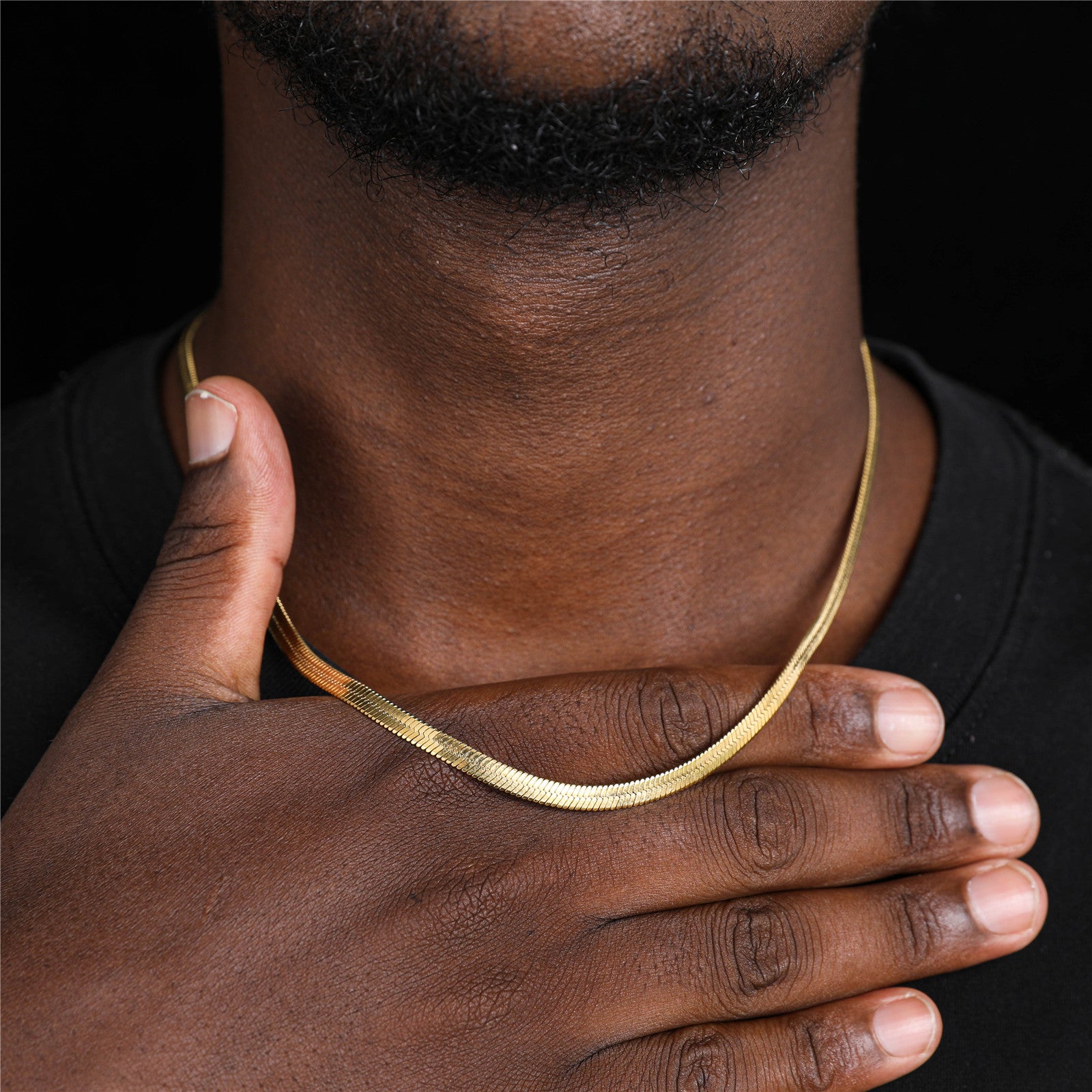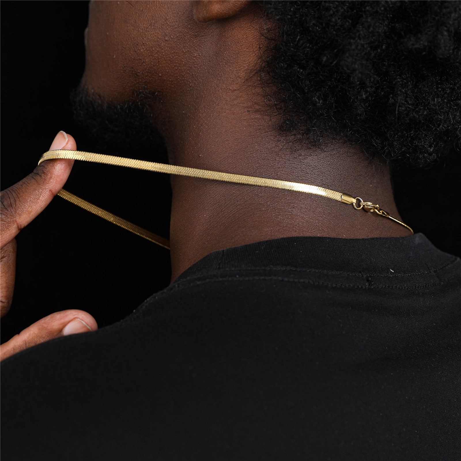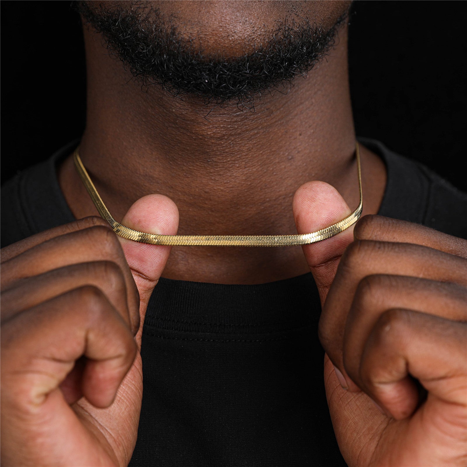 Add a touch of edgy style to your look with this stainless steel flat bone snake necklace.