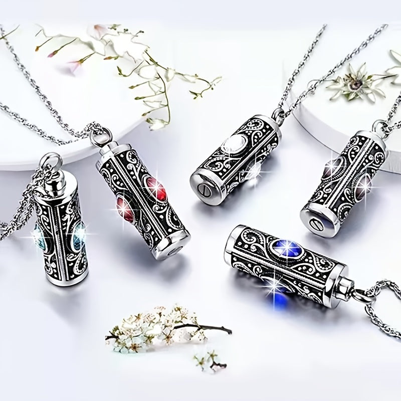Keep your loved one close with this beautiful stainless steel necklace that holds ashes. The flower design adds a touch of elegance.