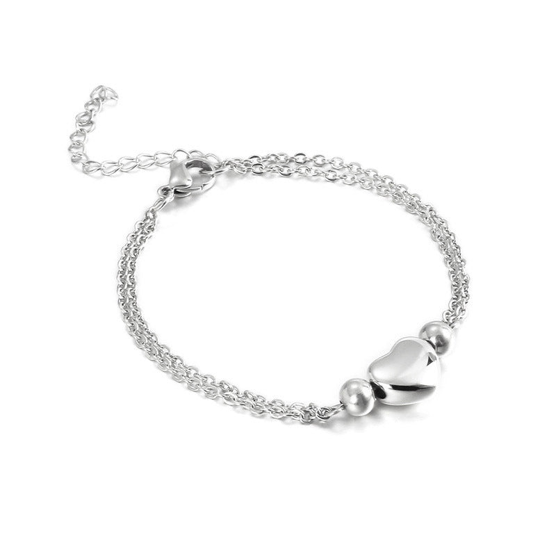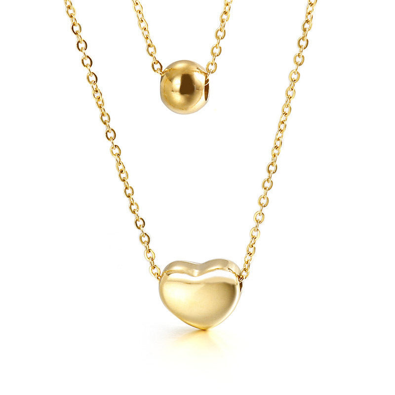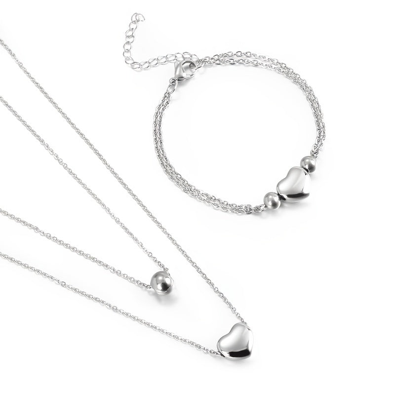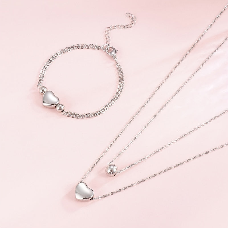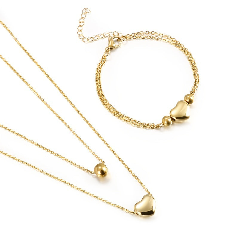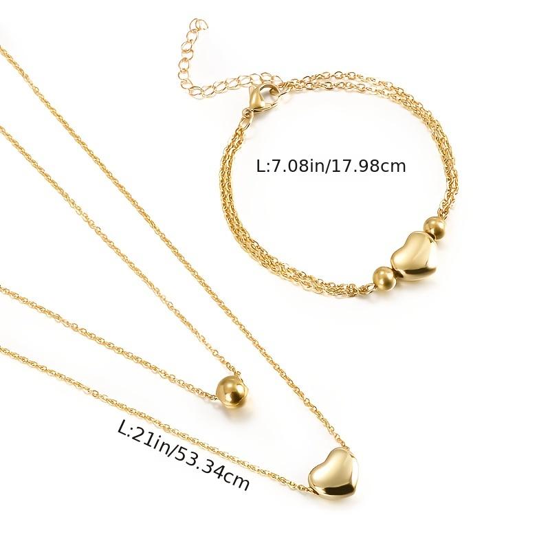 Elegant and timeless, this double layer bracelet and necklace set is a perfect addition to any outfit. Made from high-quality stainless steel and 18K plated, it features a beautiful love heart design.