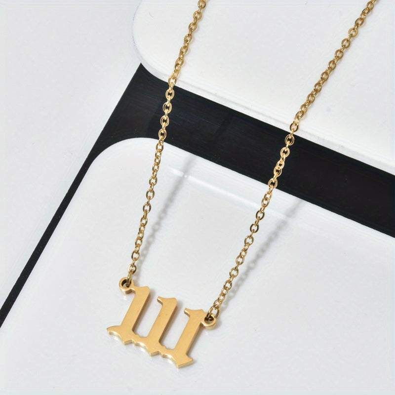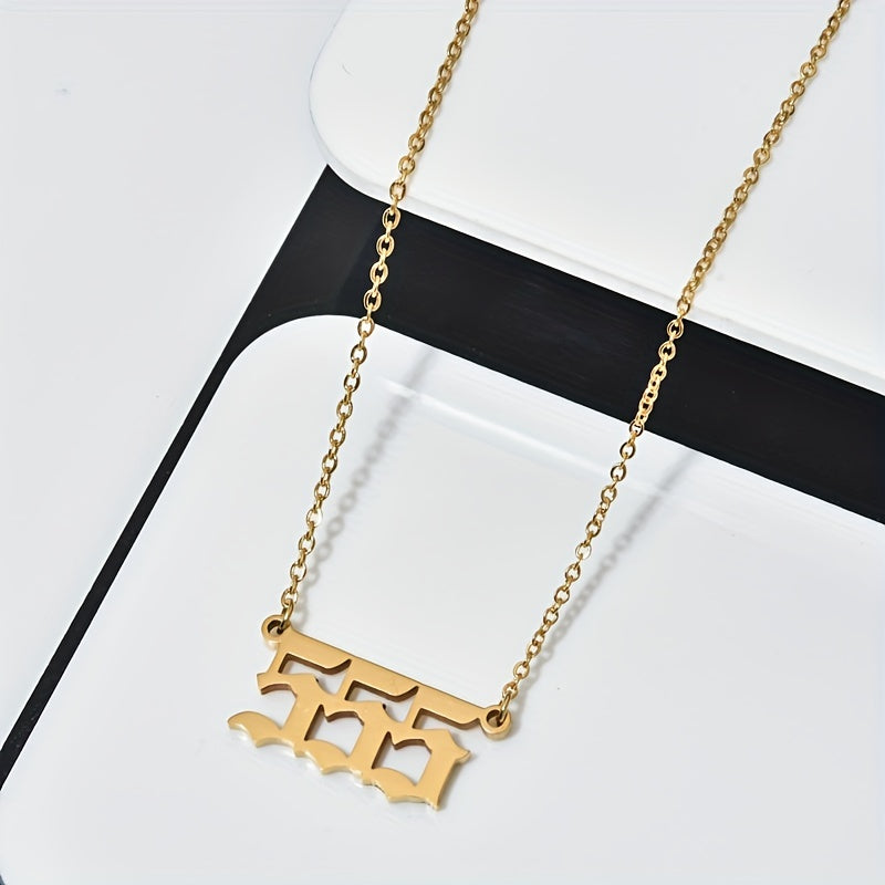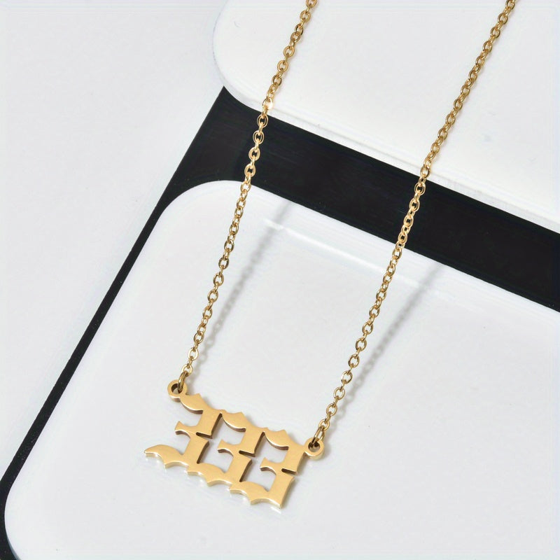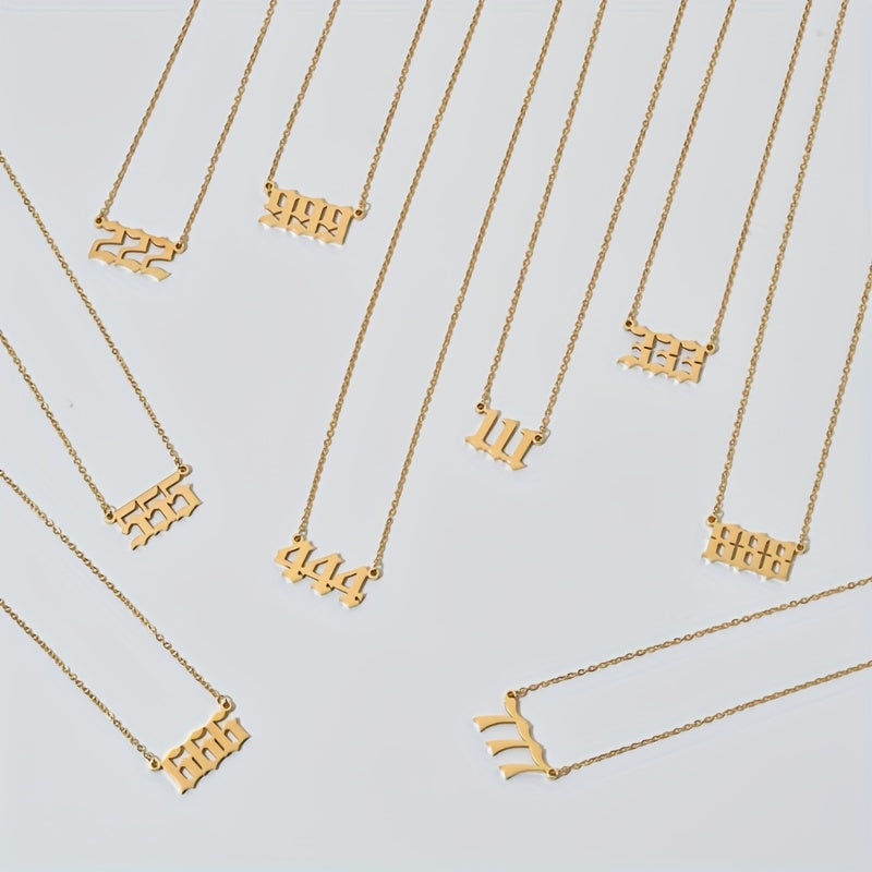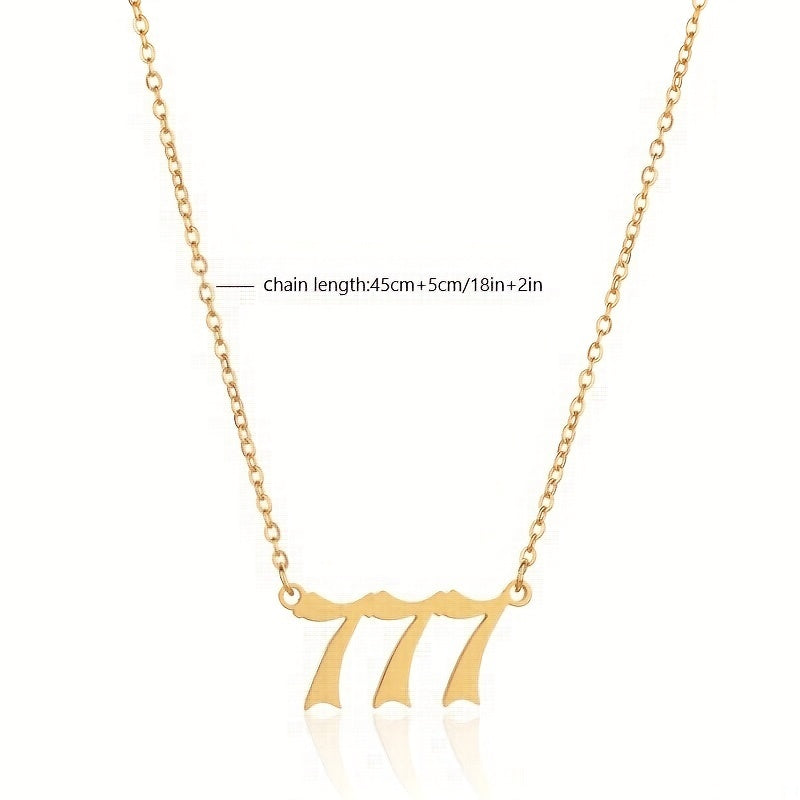 This stainless steel pendant necklace features lucky numbers 111, 222, 333, 444, 555, and 666. A stylish and meaningful accessory to wear or gift.