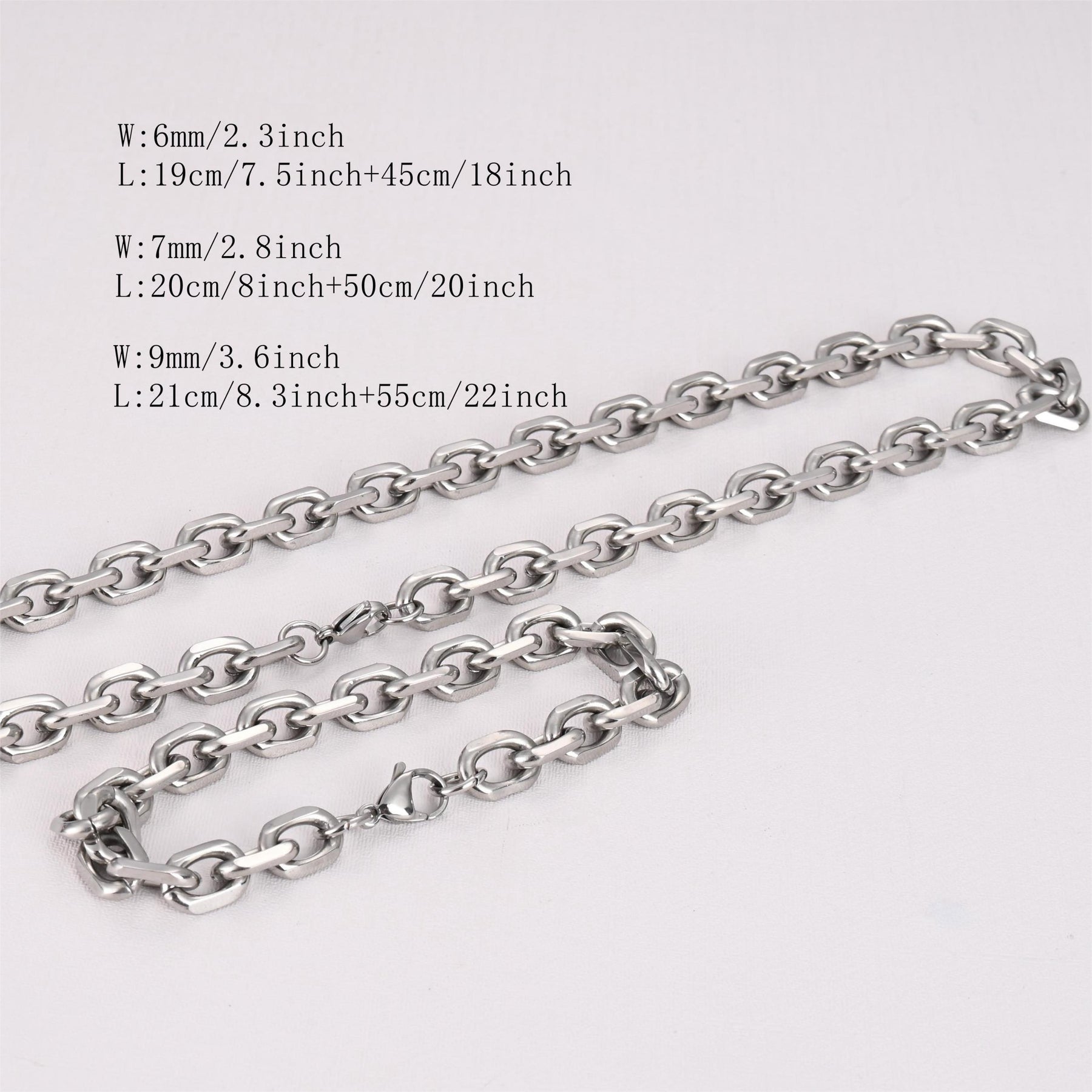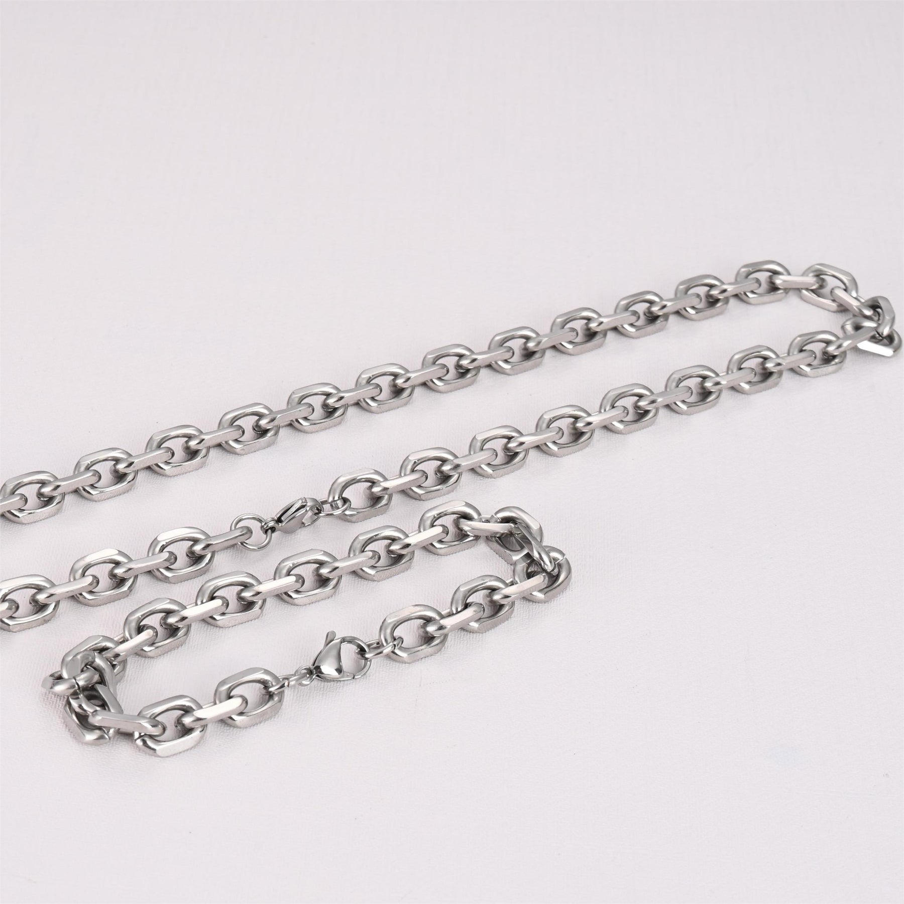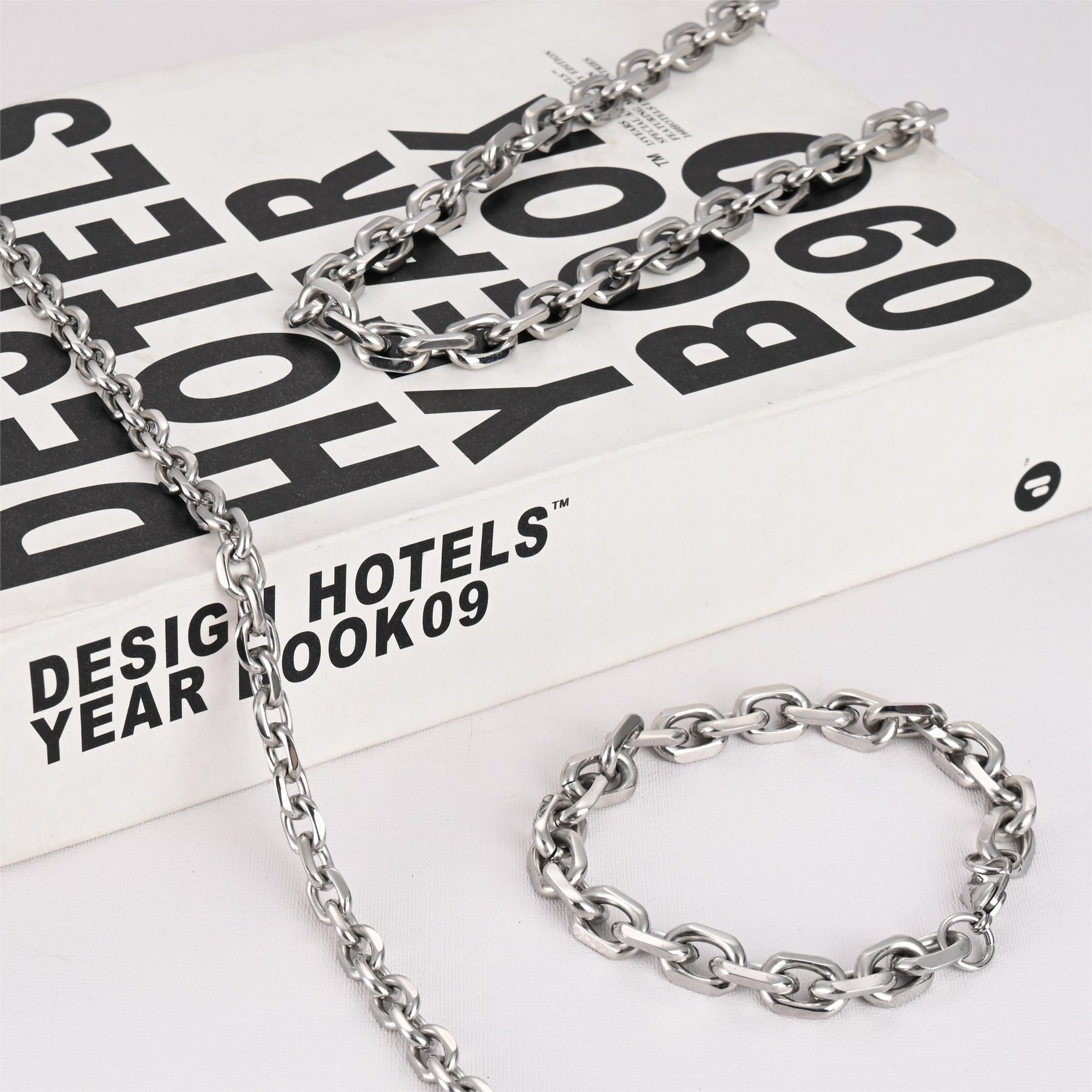 Upgrade your style with this stainless steel necklace and bracelet set. Perfect for hip hop and punk lovers, this set is durable, fade-proof, rust-resistant, and hypoallergenic.