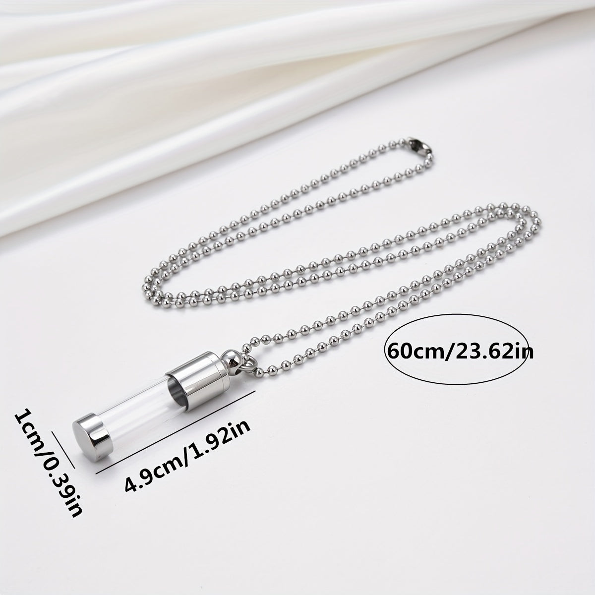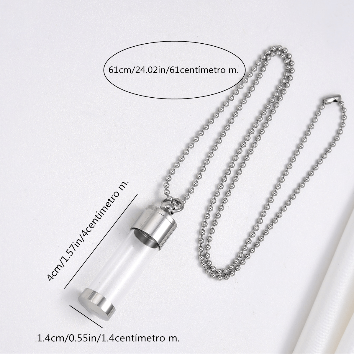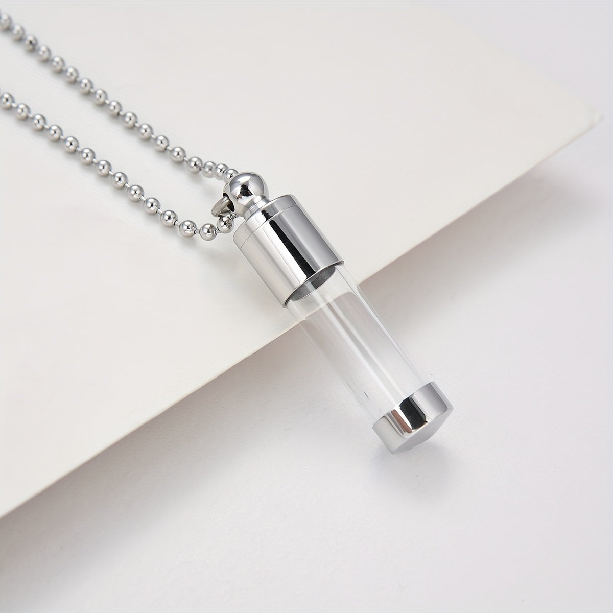This stainless steel necklace is designed as an openable container tube urn to hold cremation ashes. It serves as a beautiful memorial jewelry piece for both men and women.