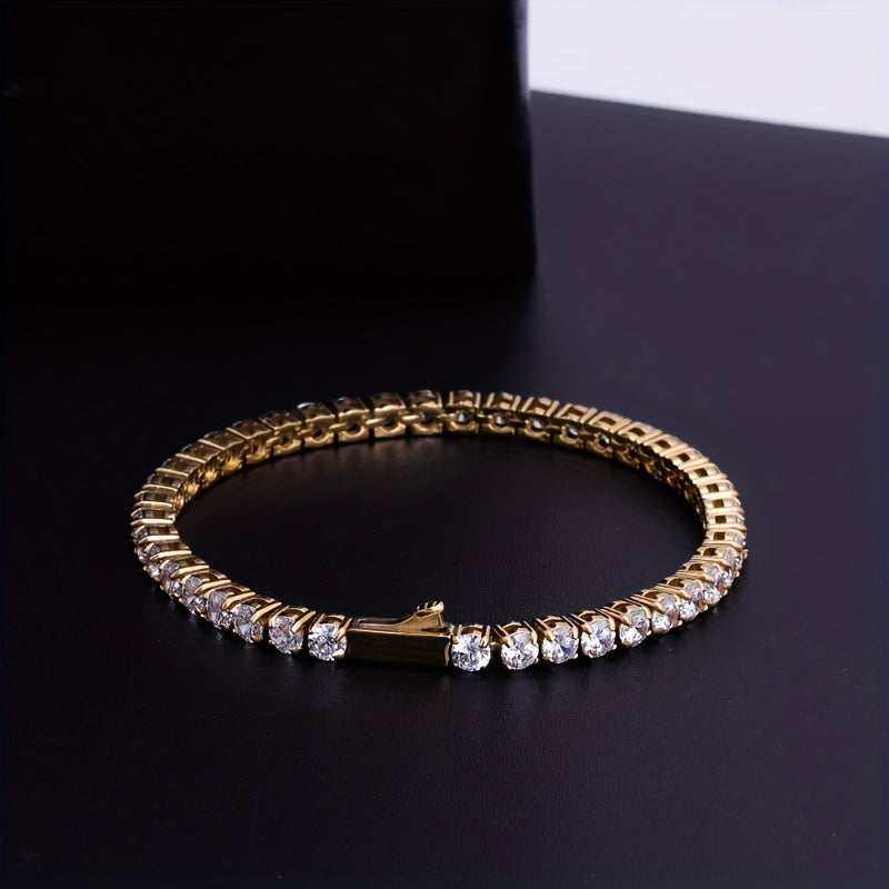 Hip hop style stainless steel bracelet with 5mm inlaid zircon claw chain. Non-allergic, non-fading, non-rusting, and waterproof for a lasting, trendy look.