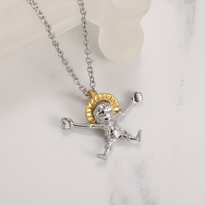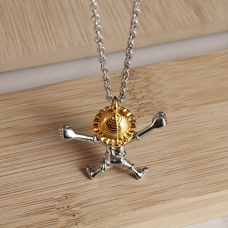 This creative cartoon anime pendant necklace features a straw hat boy design, perfect for daily wear or special occasions. The alloy material ensures durability and style.