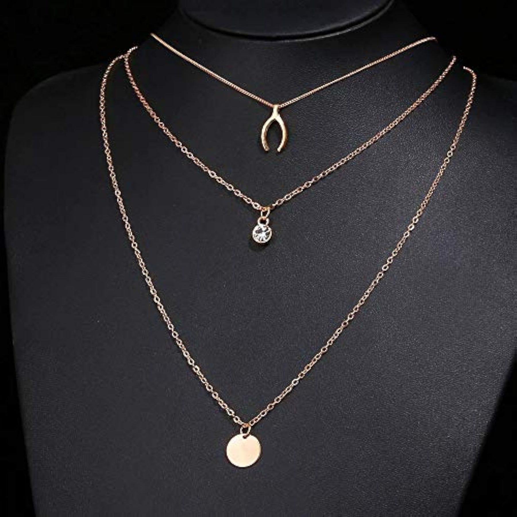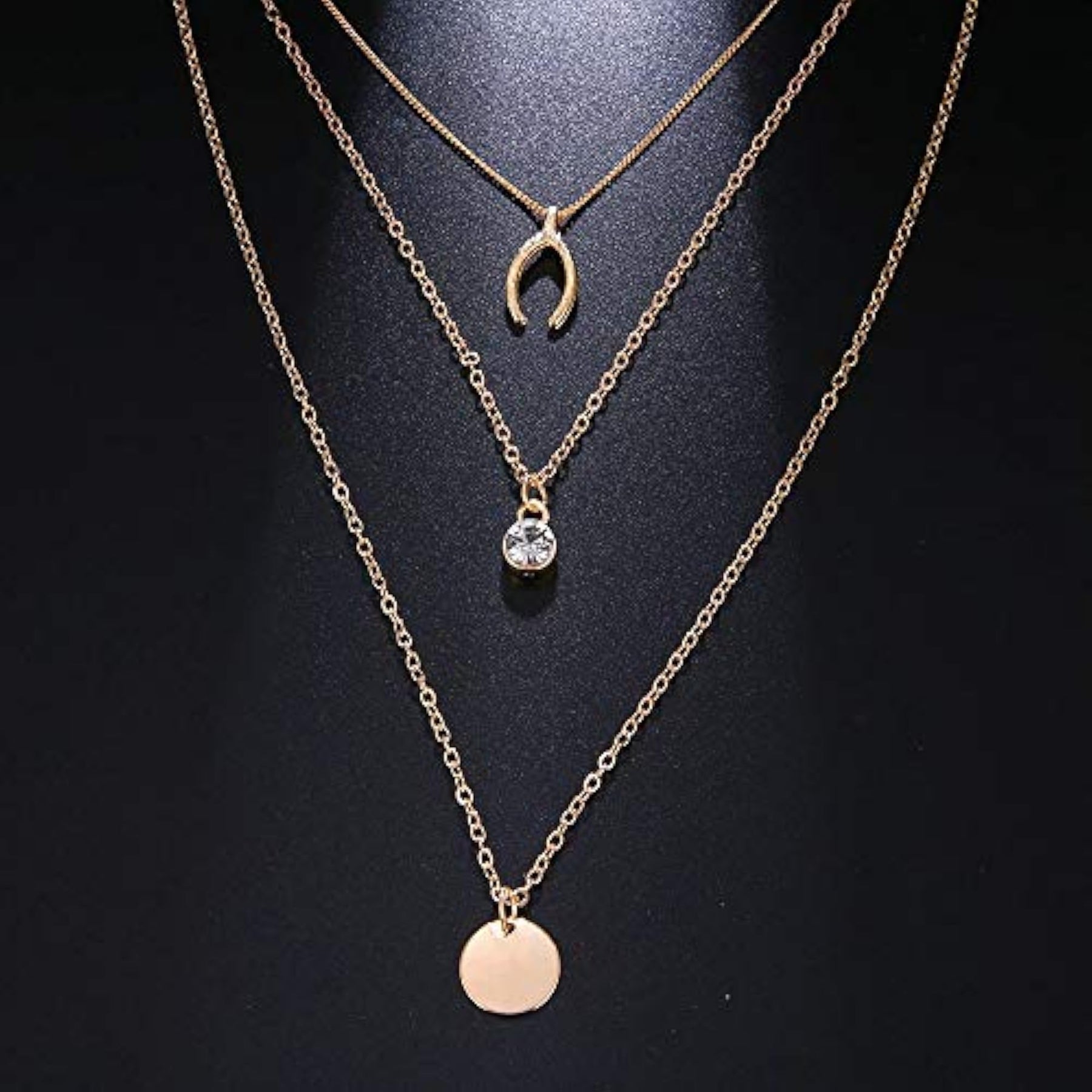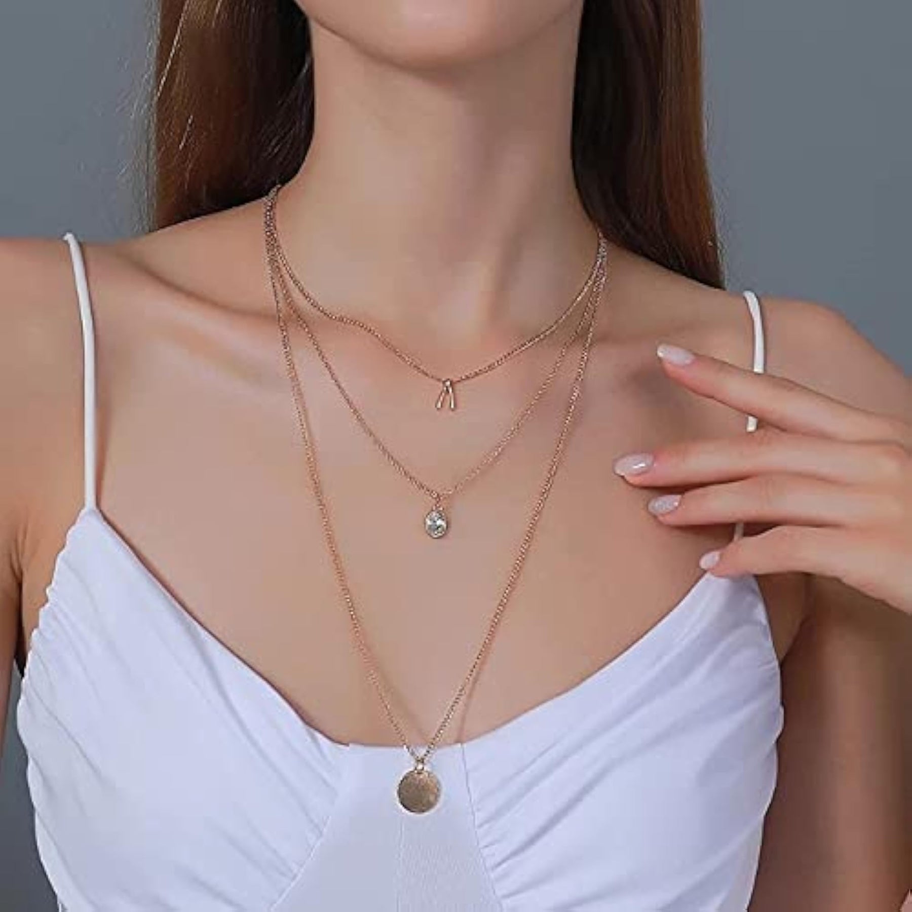 Elevate your look with this trendy multilayer metal chain pendant necklace in gold color. Perfect for any outfit or occasion.