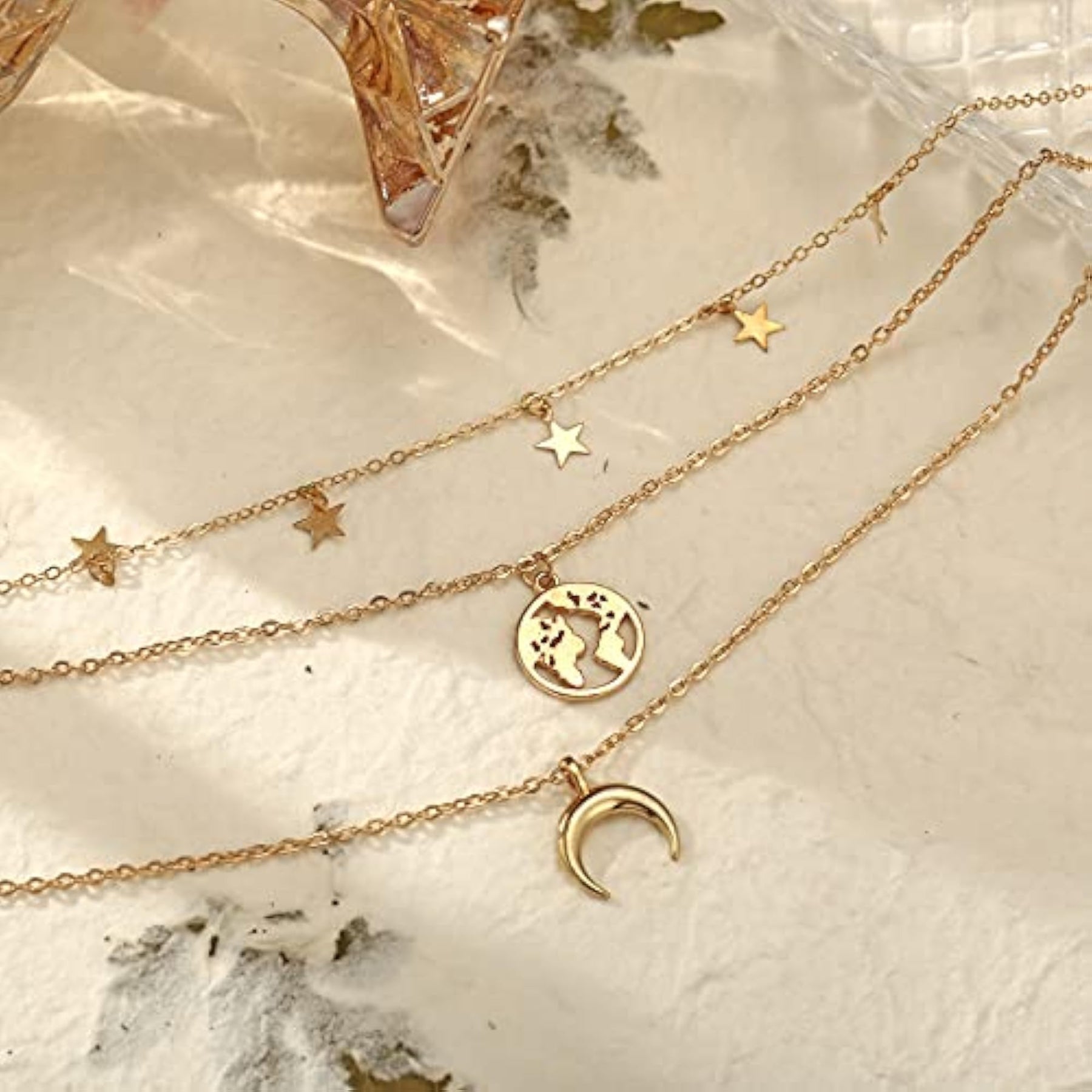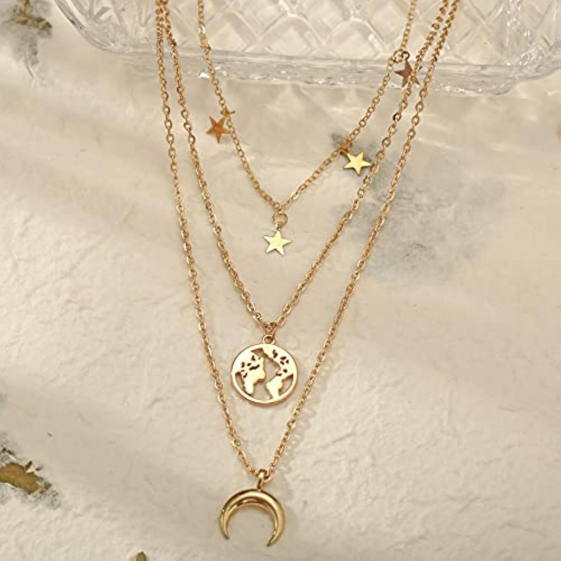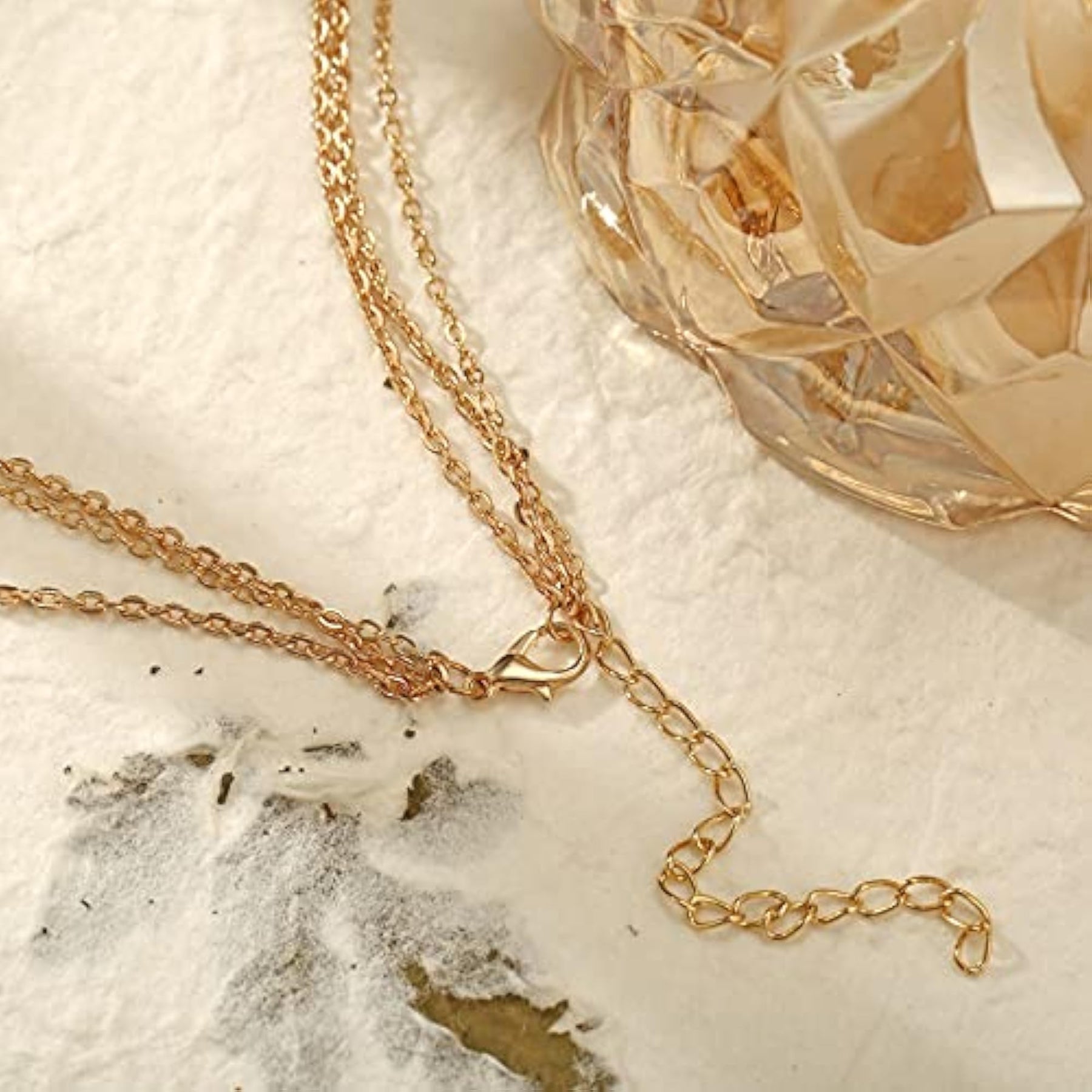 Elevate your style with this trendy multilayer metal chain pendant necklace in a stunning gold finish.
