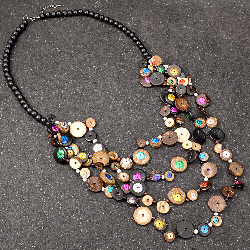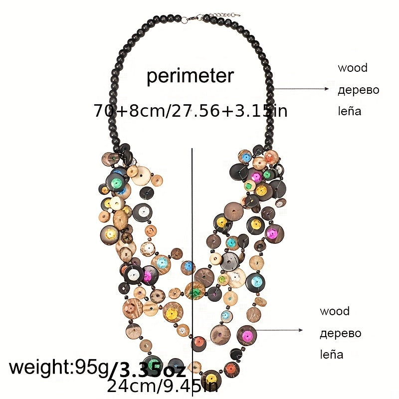 Add a pop of color to your outfit with this vintage-inspired long necklace featuring colorful wooden beads. Perfect for summer, holidays, and parties.