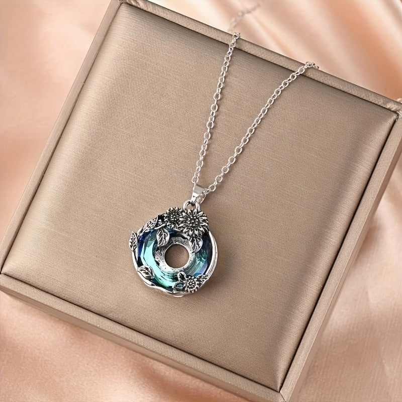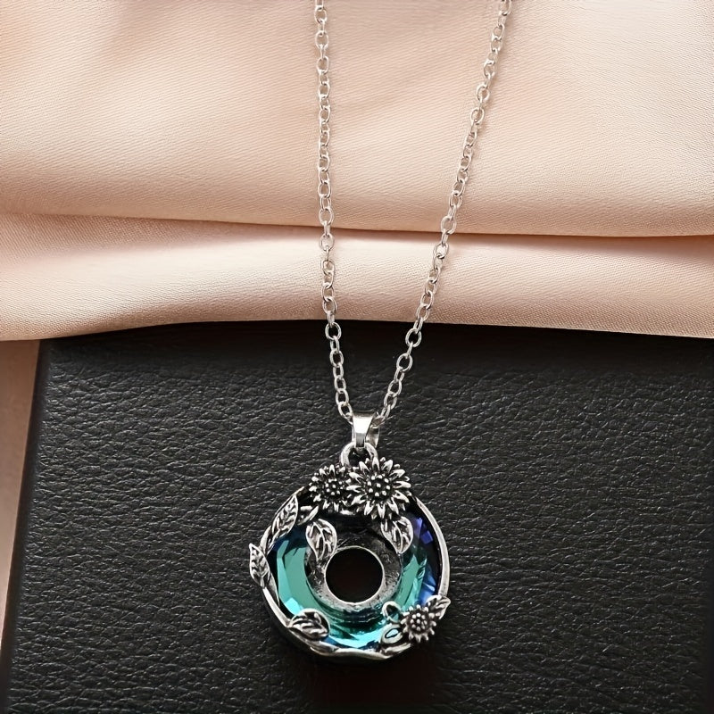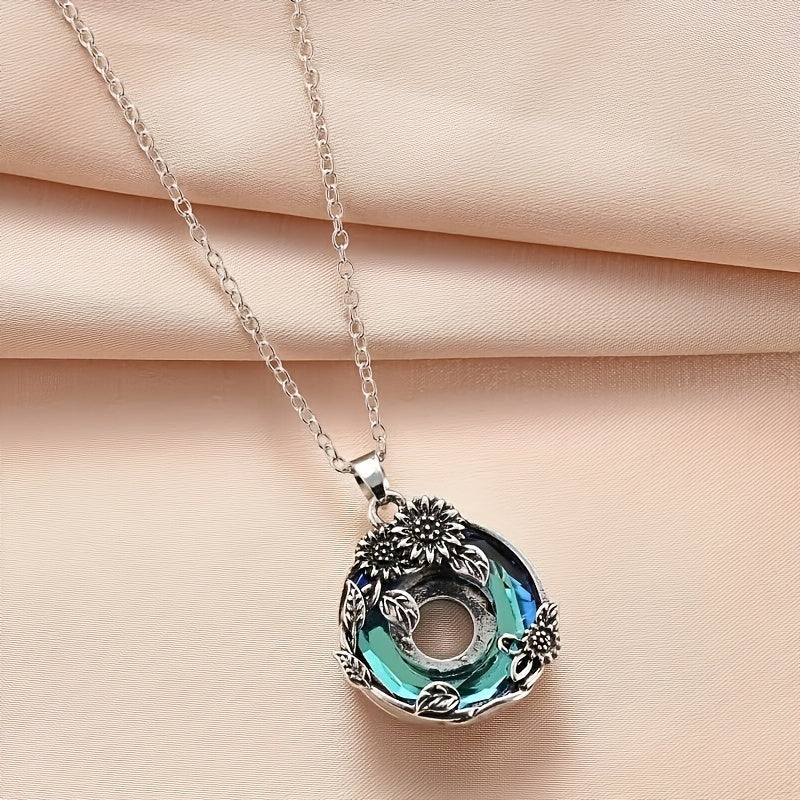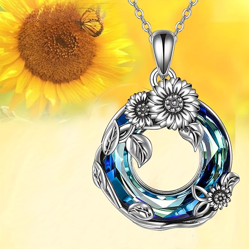 Sunflower Crystal Pendant Necklace Women Men Jewelry