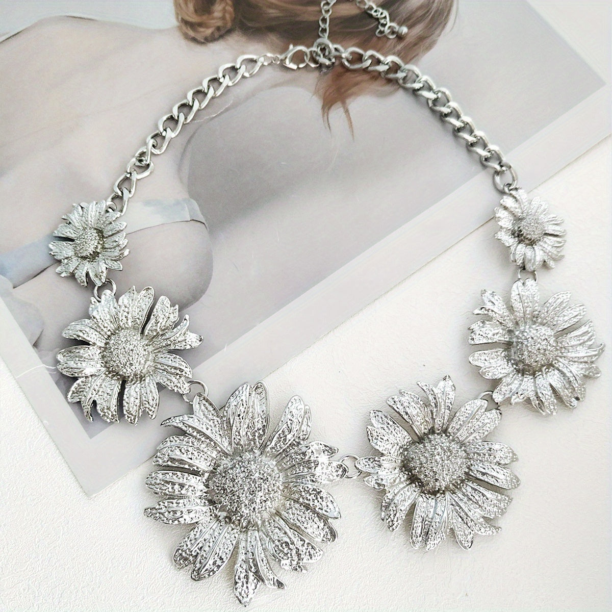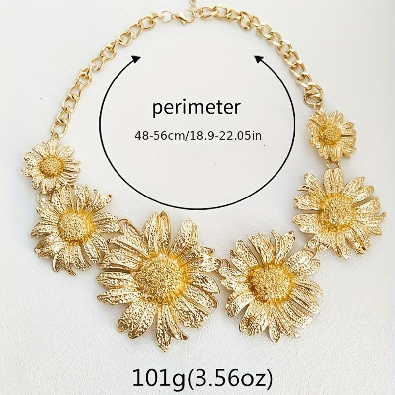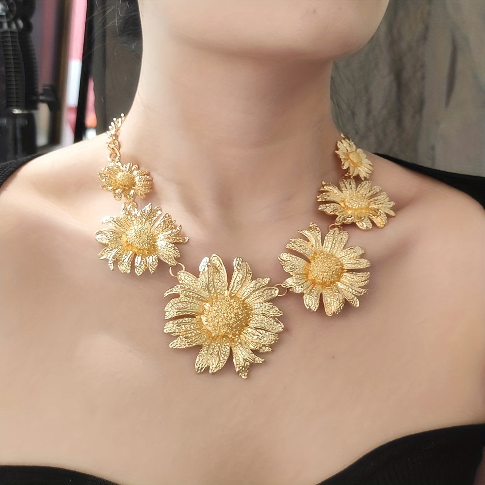 Sunflower Necklace & Earrings Set Exaggerated Alloy Floral Hip Hop Party