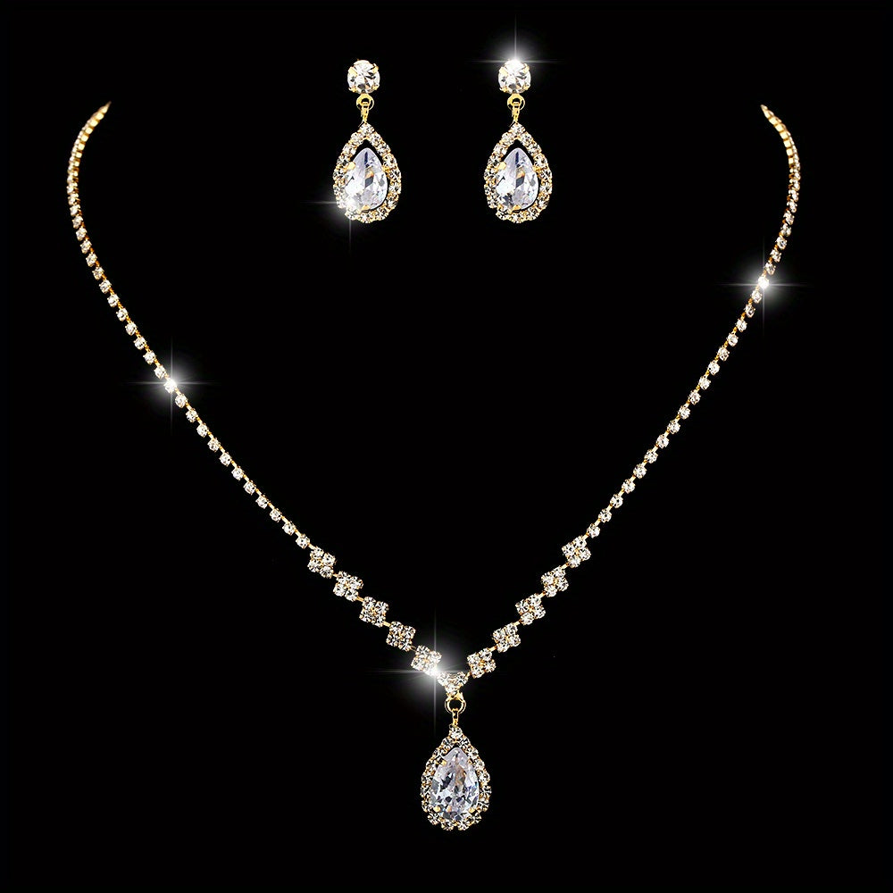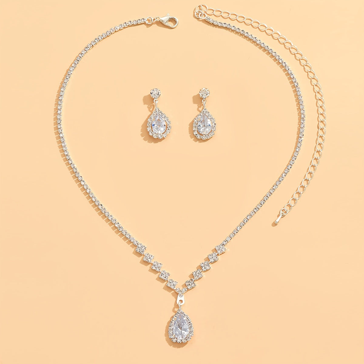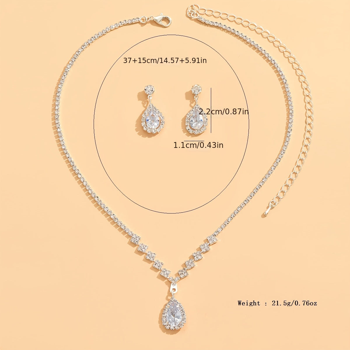 Chic and elegant teardrop shape jewelry set featuring inlaid zircon stones in pendant necklace and dangle earrings. Perfect for women and girls.