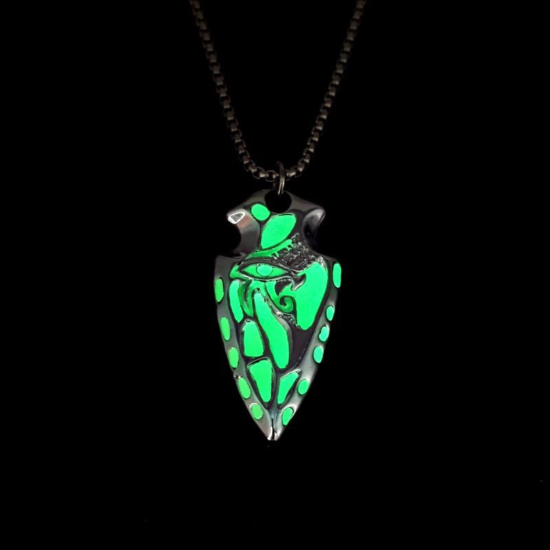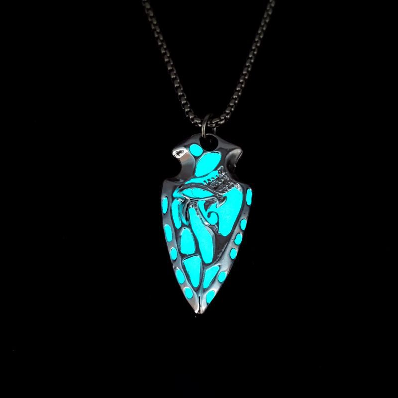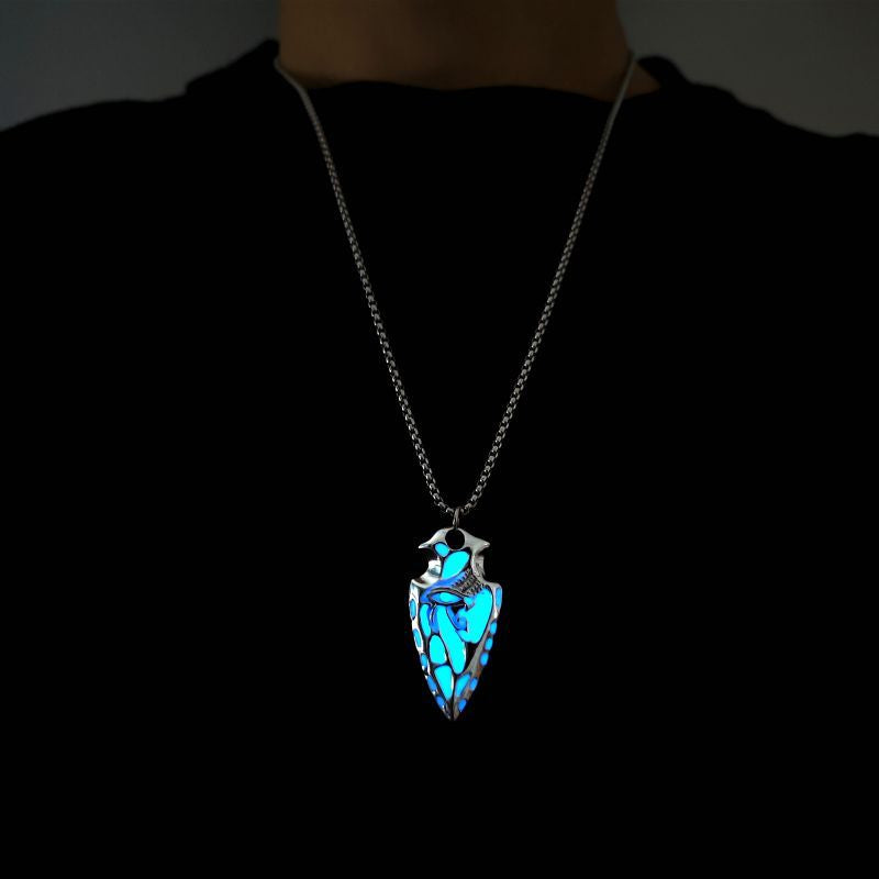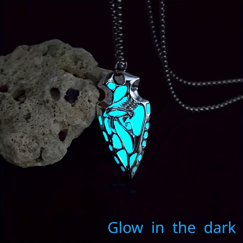 This pendant necklace features a retro Viking design with a luminous glow effect, perfect for Halloween or everyday wear.