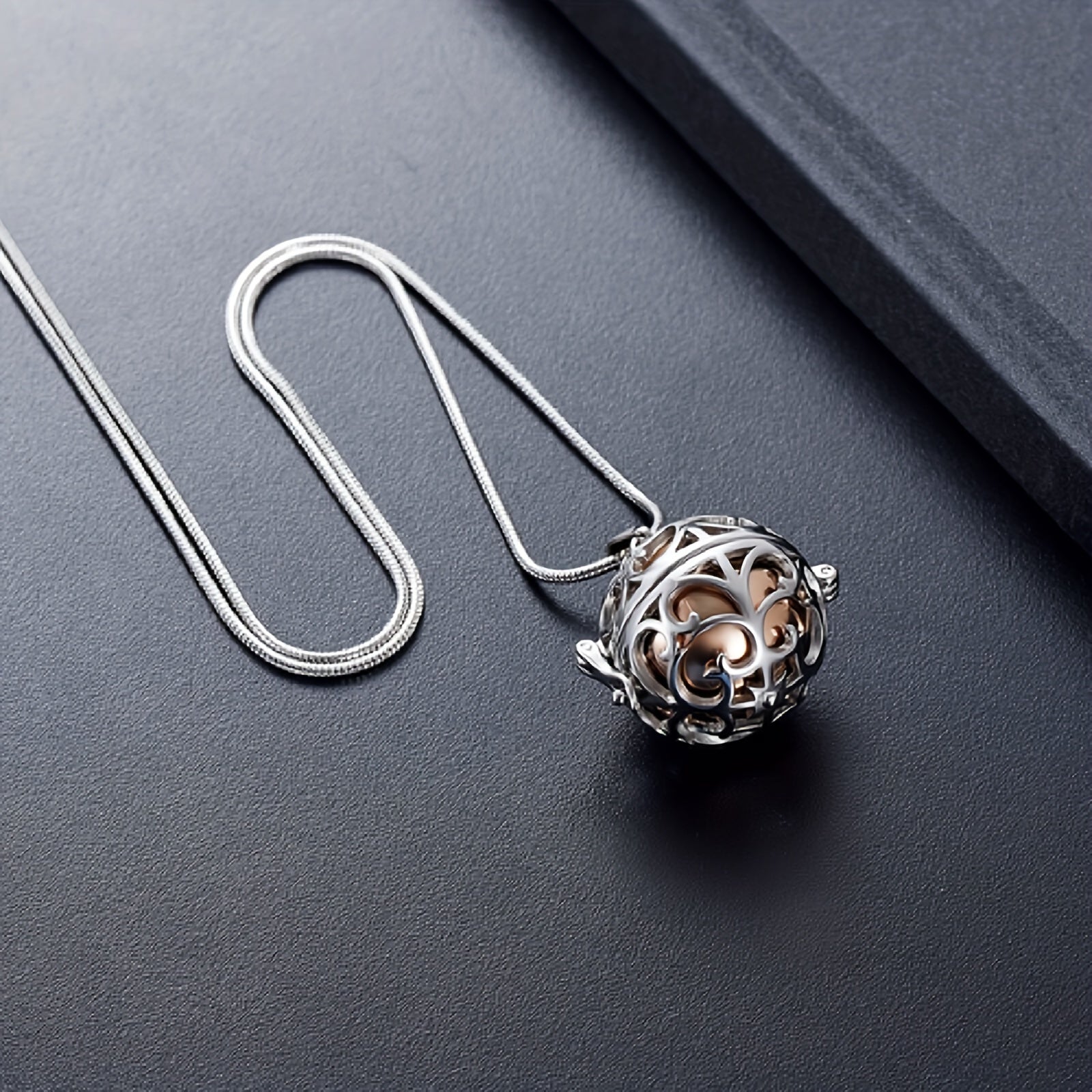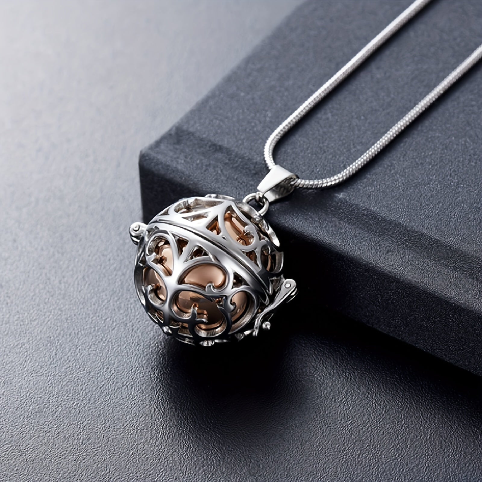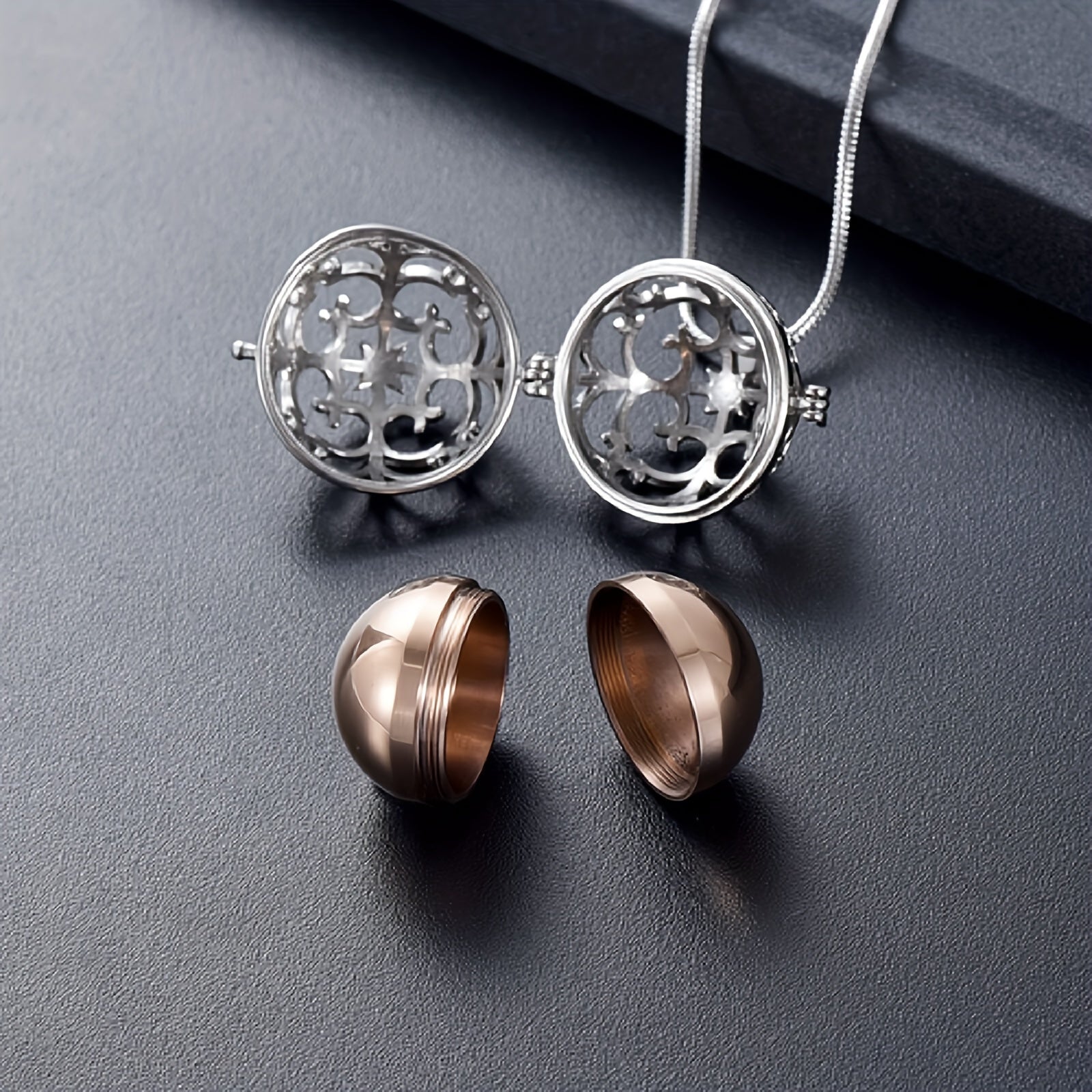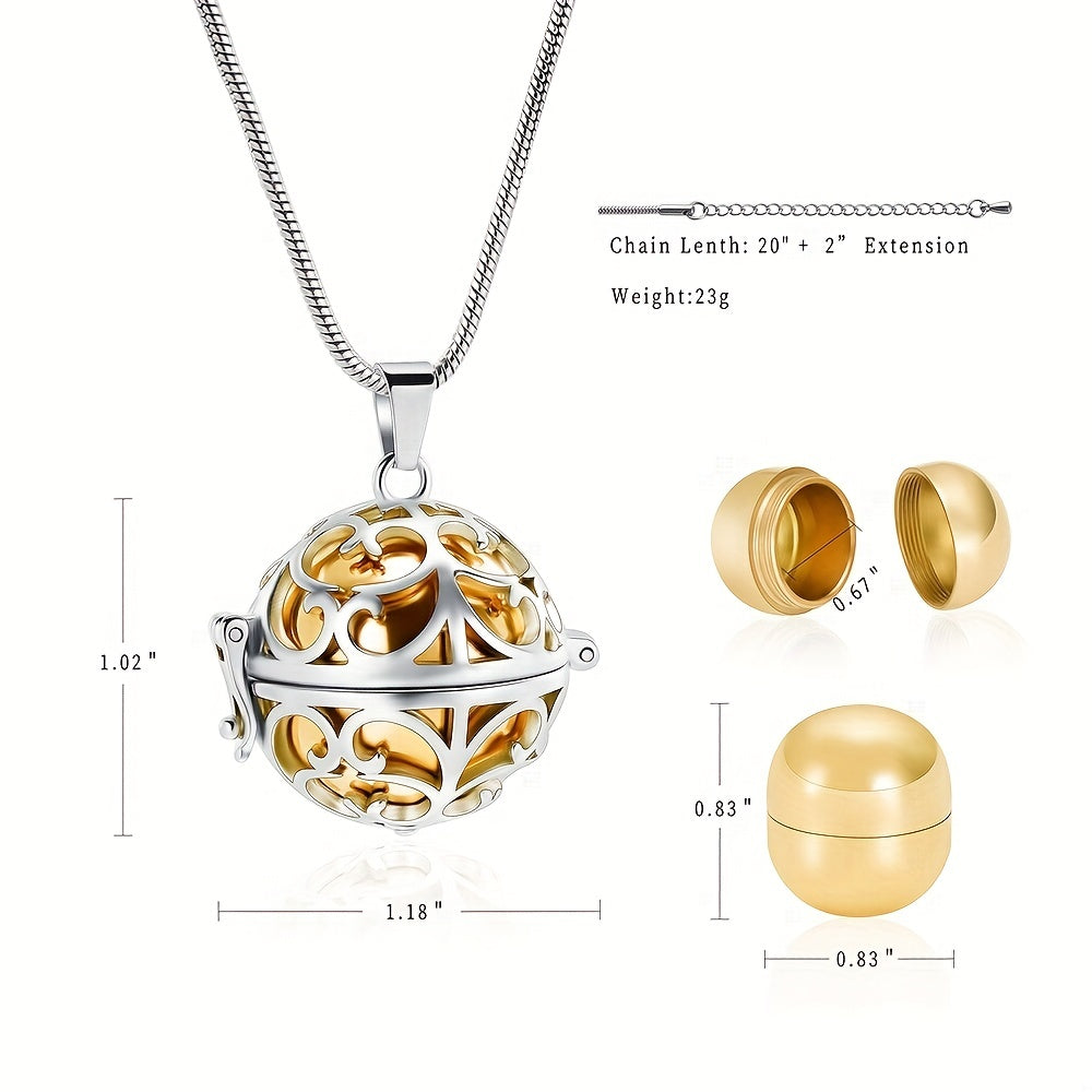 • Stainless steel hollow mini ball ashes urn necklace