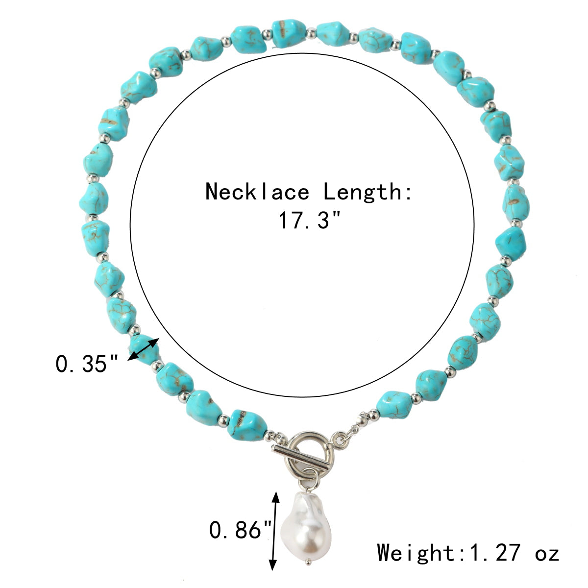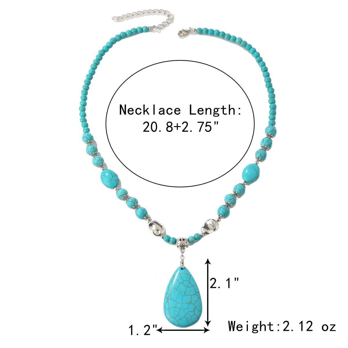 Enhance your look with this vintage alloy necklace featuring turquoise pearls. This beaded necklace boasts a retro style with an ethnic pendant, perfect for adding a touch of charm to your outfit.