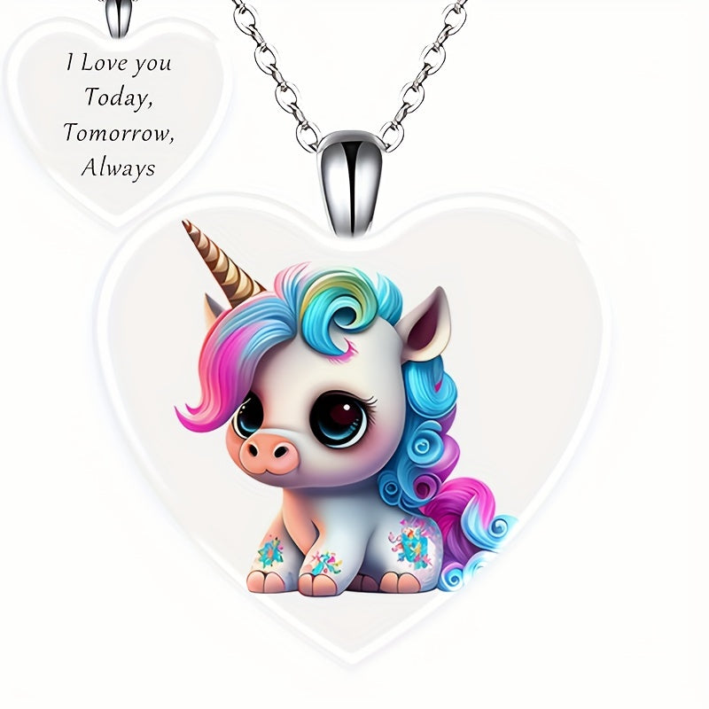 Unicorn Love Crystal Pendant Necklace Holiday Party Gift