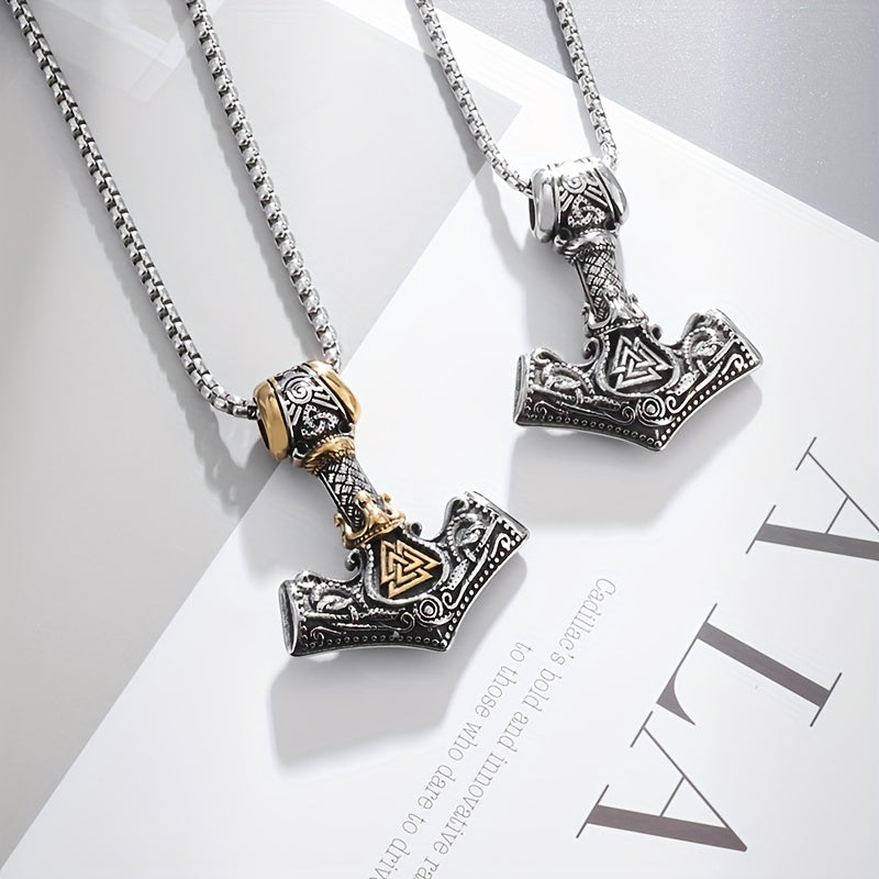 Embrace your inner warrior with this vintage Viking necklace featuring a hammer pendant. Perfect for men who appreciate Norse mythology and rugged style.